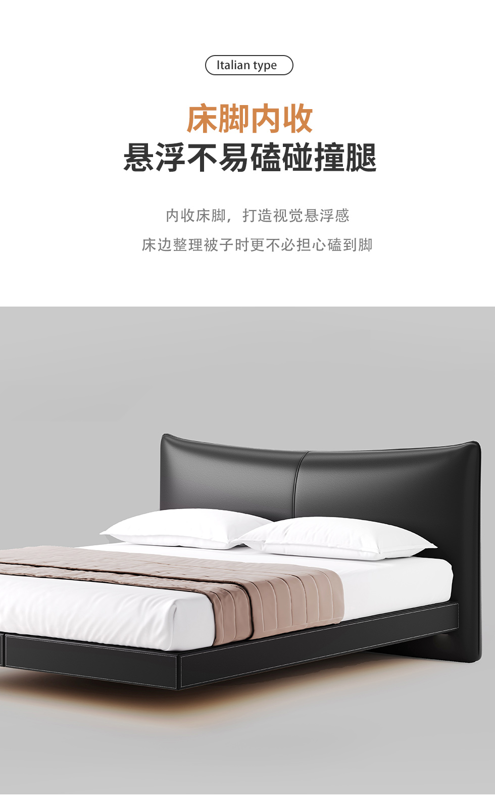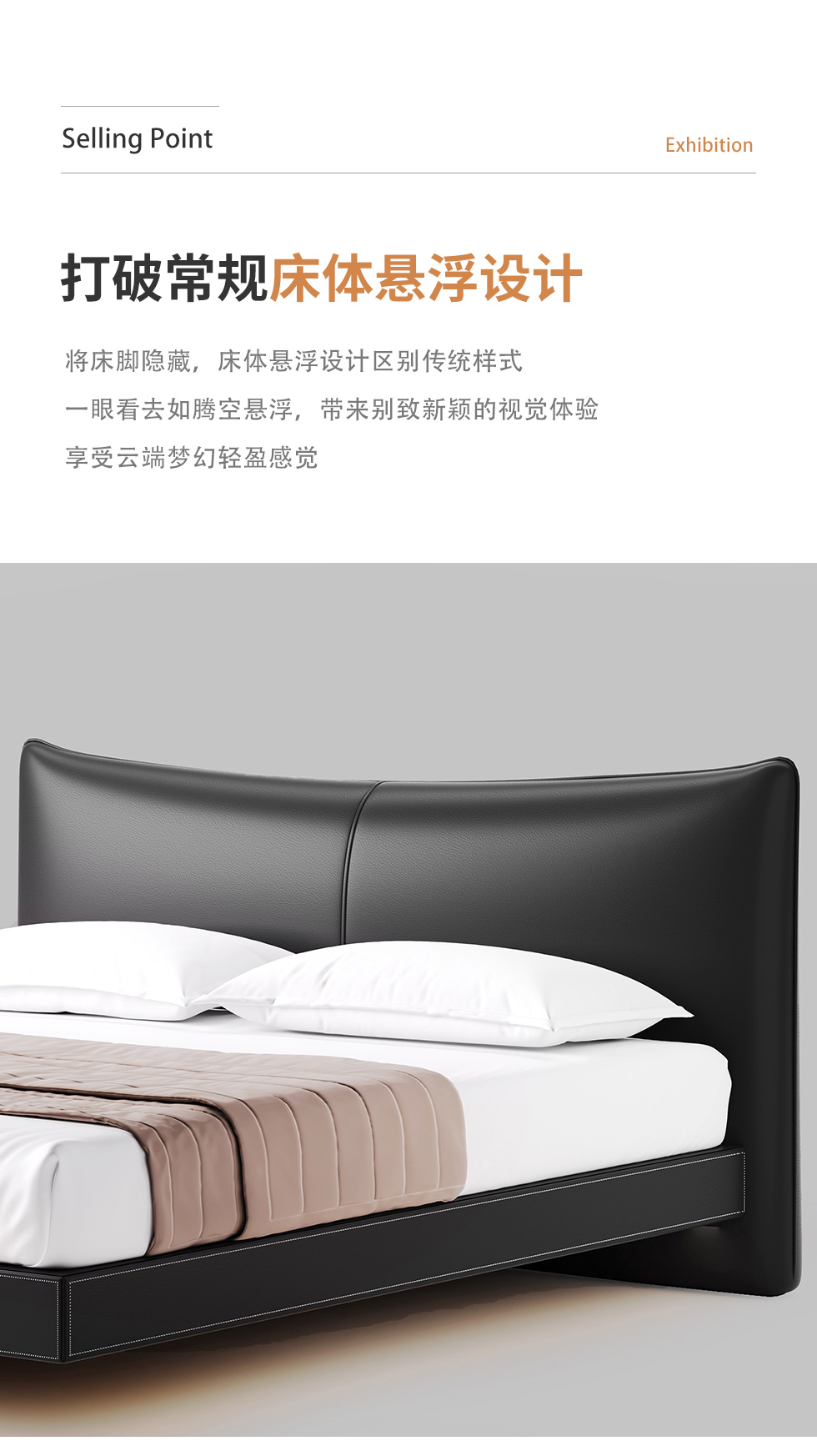德卡图 现代简约 全头层黄牛皮 全实木整体床架俄罗斯落叶松+多层板+高弹海棉+紫罗兰海棉 1.8*2.0米悬浮床¥10841