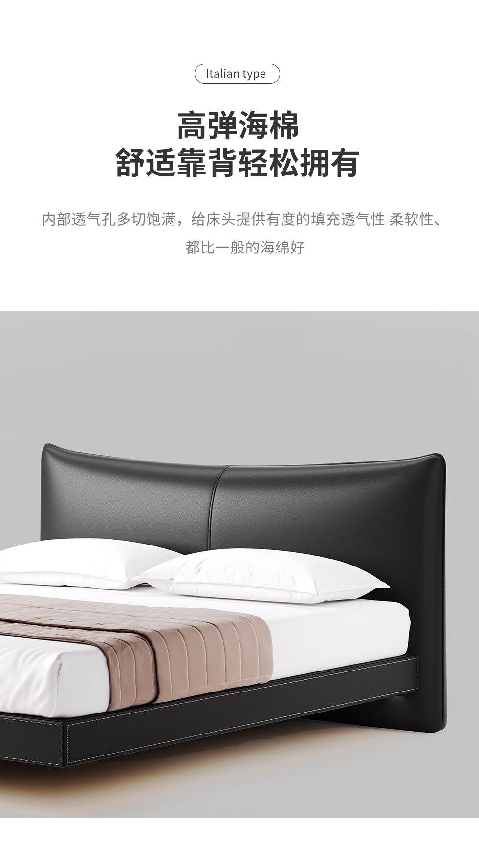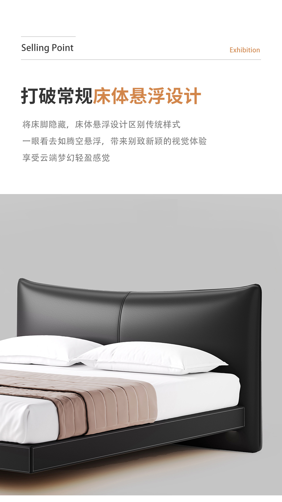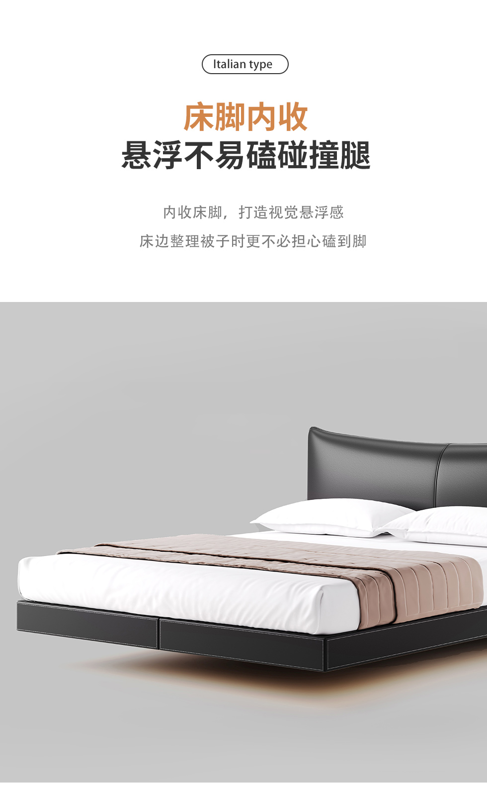 德卡图 现代简约 全头层黄牛皮 全实木整体床架俄罗斯落叶松+多层板+高弹海棉+紫罗兰海棉 1.8*2.0米悬浮床¥11652