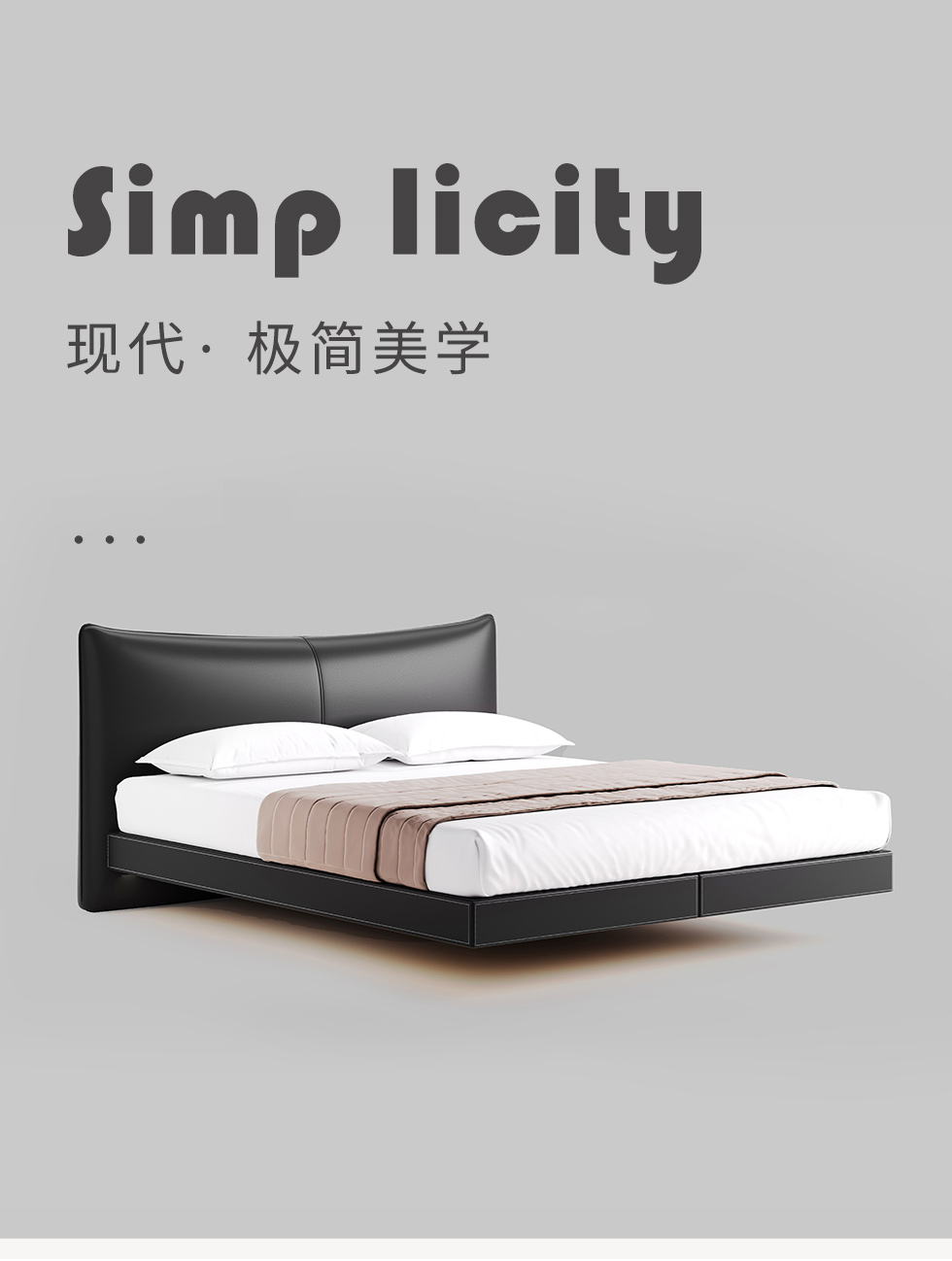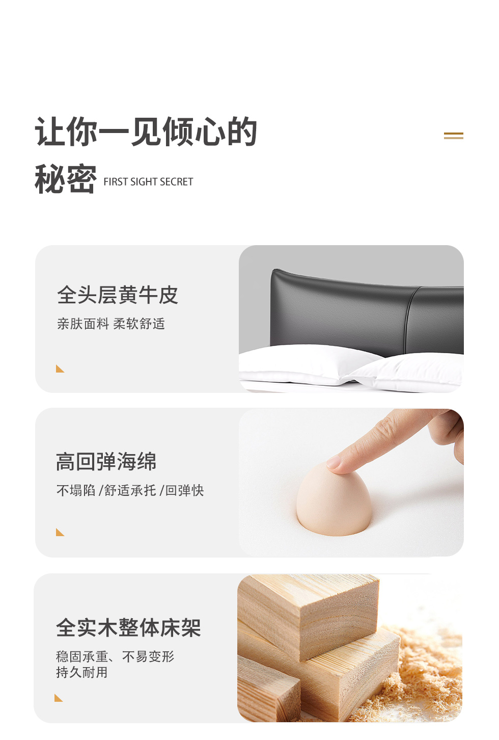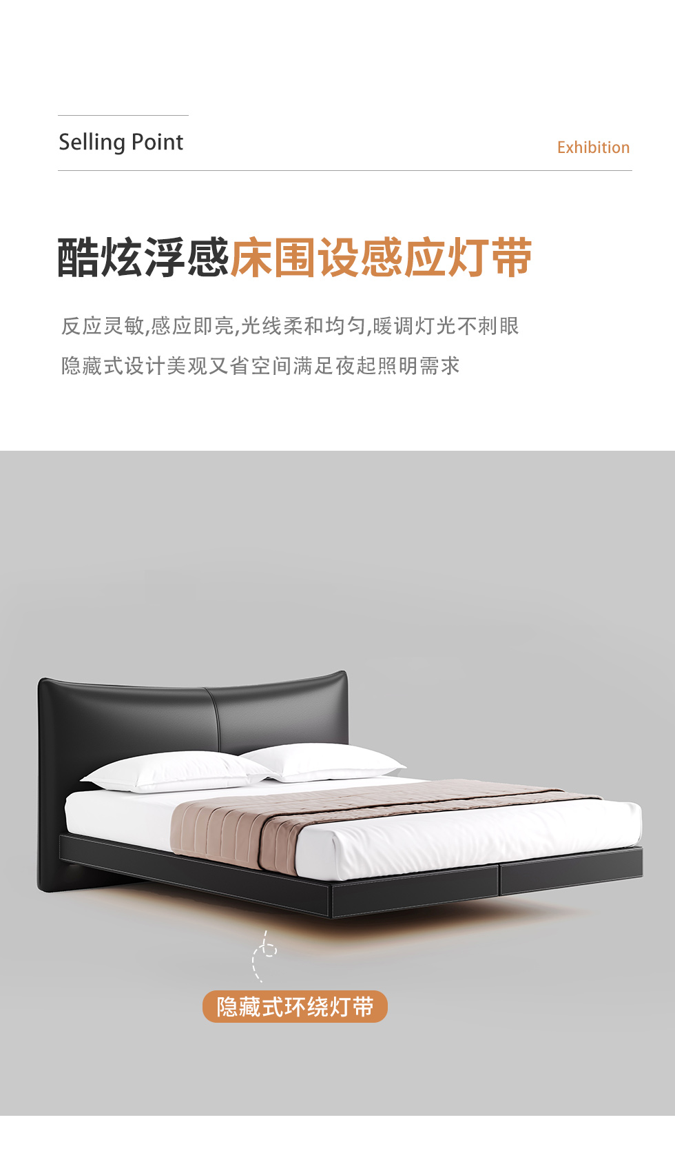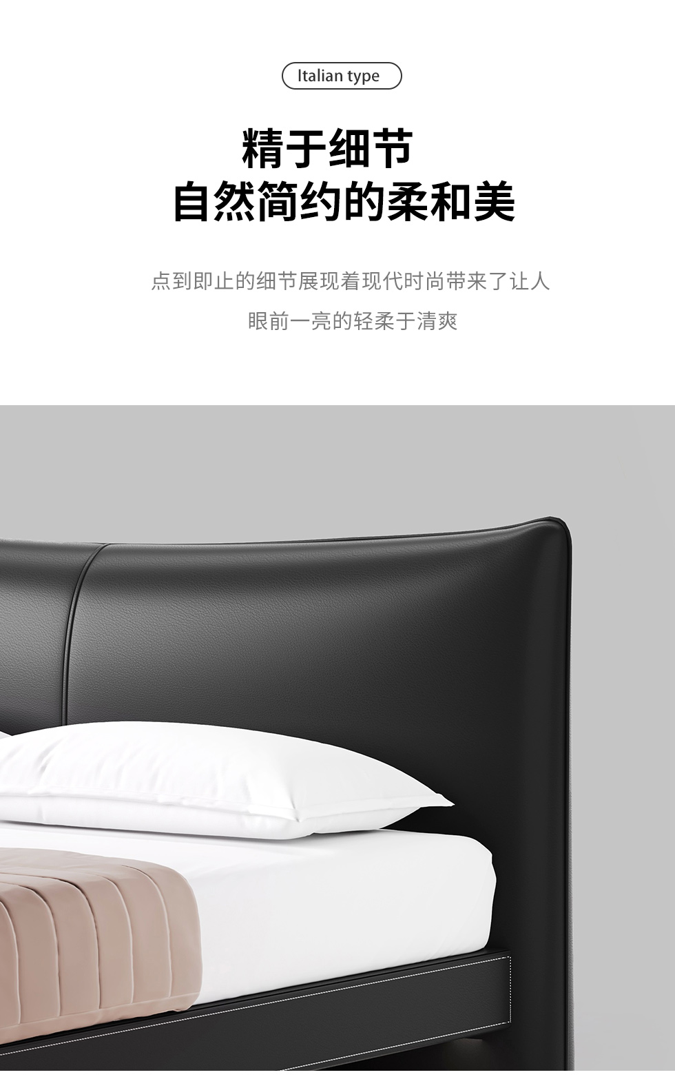 德卡图 现代简约 全头层黄牛皮 全实木整体床架俄罗斯落叶松+多层板+高弹海棉+紫罗兰海棉 1.8*2.0米悬浮床¥11652