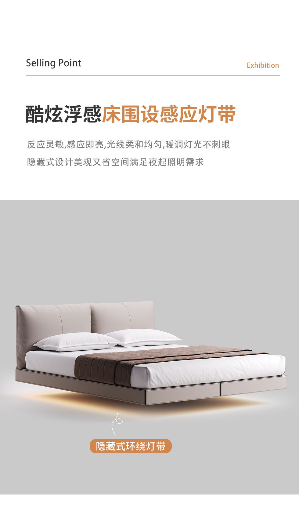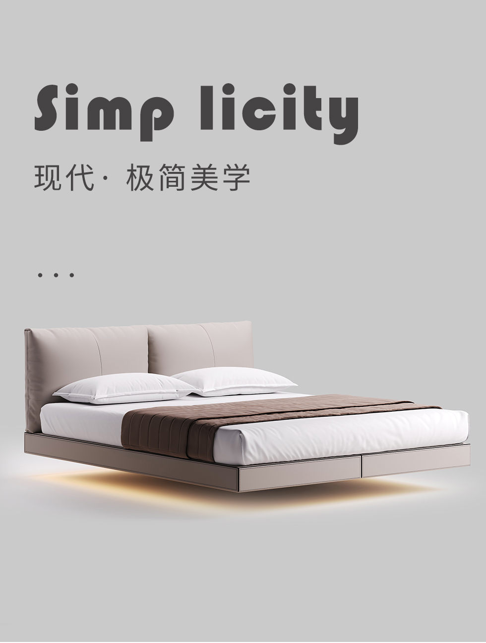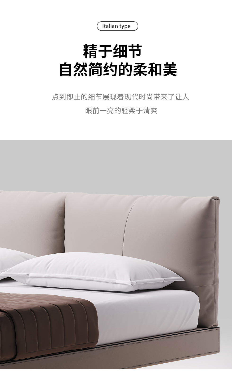 德卡图 现代简约 全头层黄牛皮 全实木整体床架俄罗斯落叶松+多层板+高弹海棉+紫罗兰海棉 1.5*2.0米悬浮床