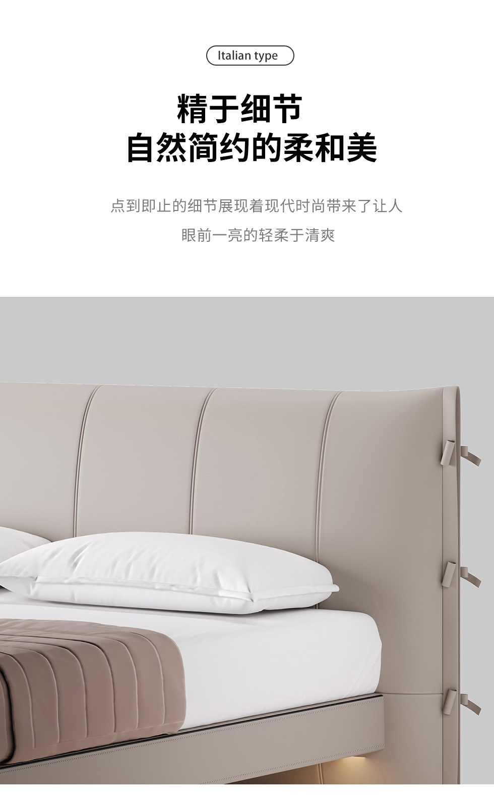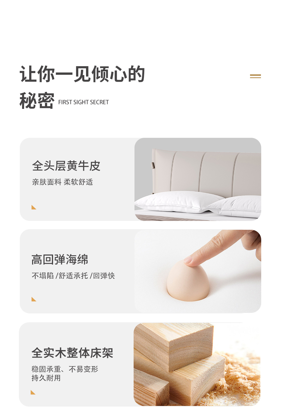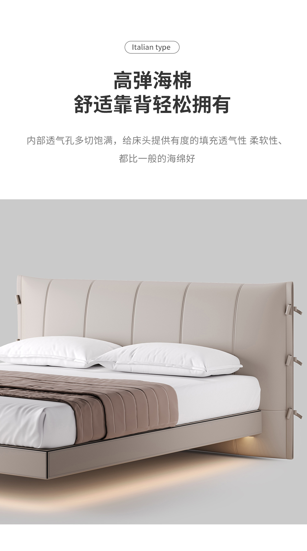 德卡图 现代简约 全头层黄牛皮 全实木整体床架俄罗斯落叶松+多层板+高弹海棉+紫罗兰海棉 1.8*2.0米悬浮床¥6505