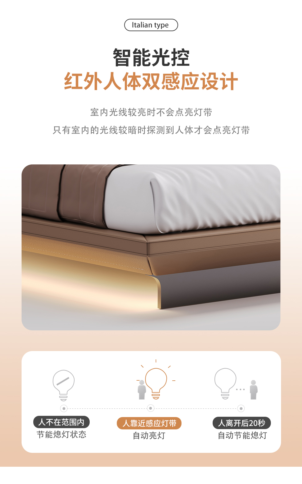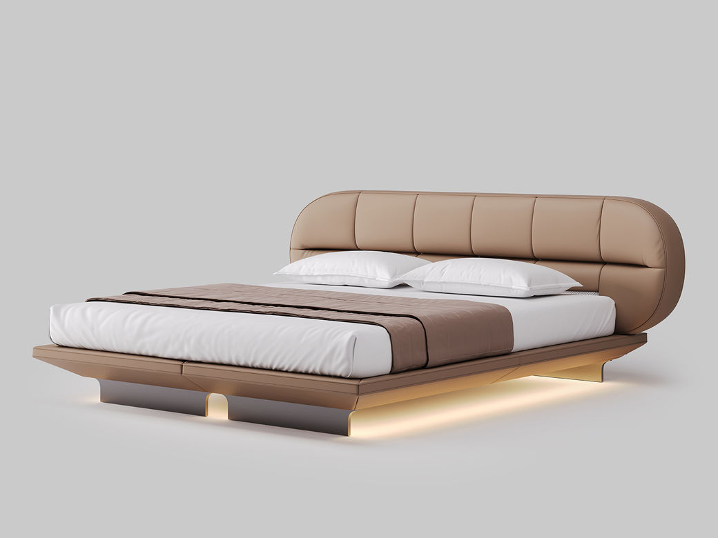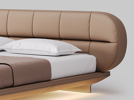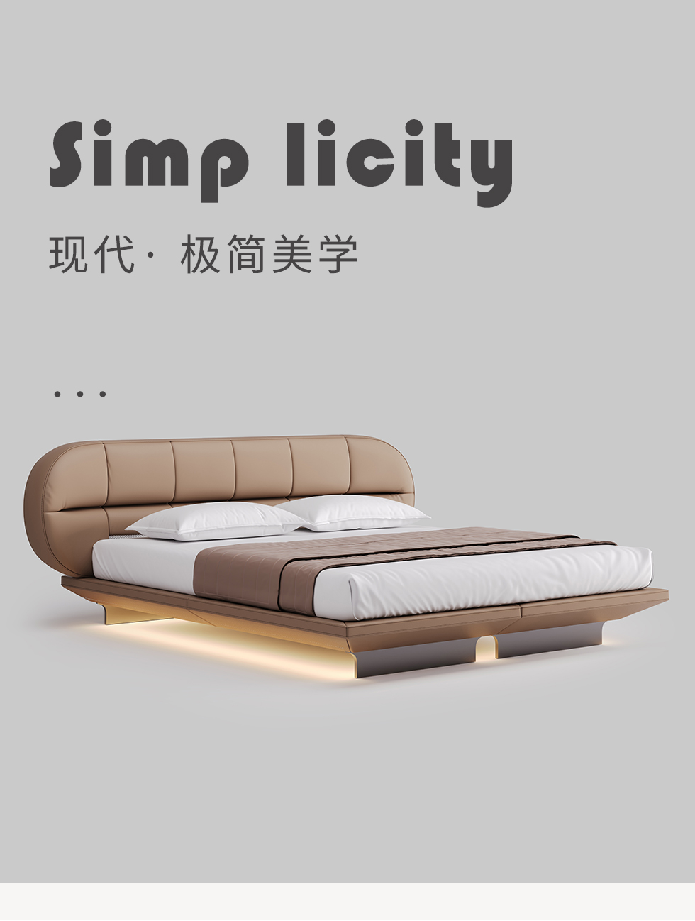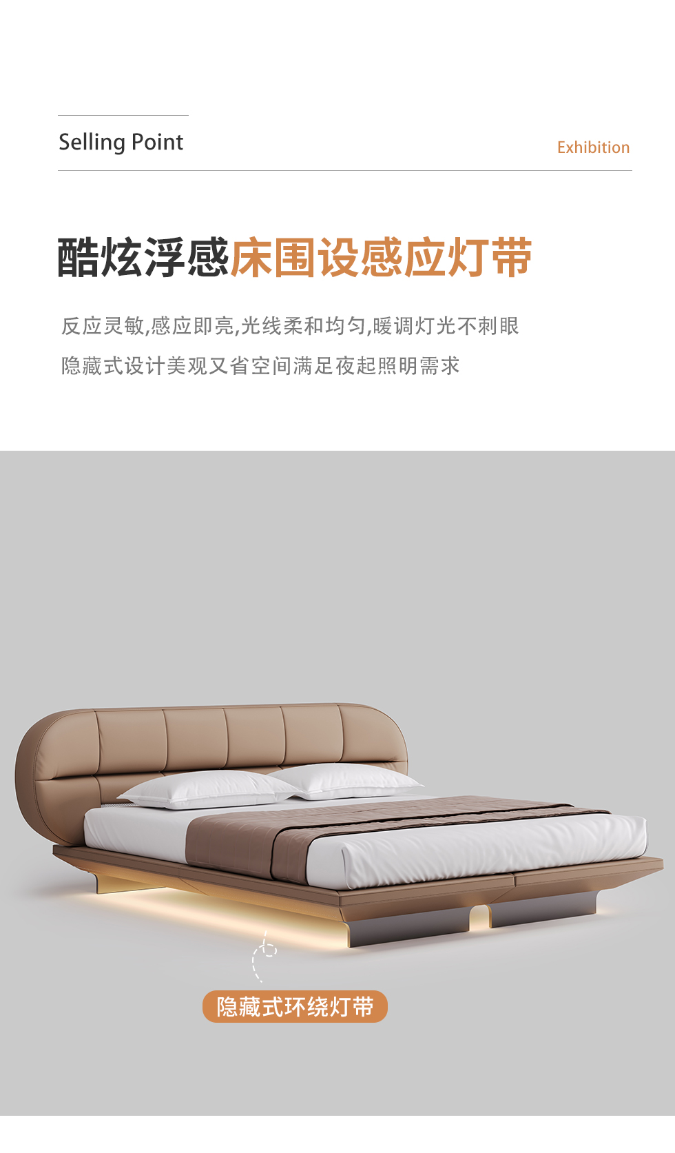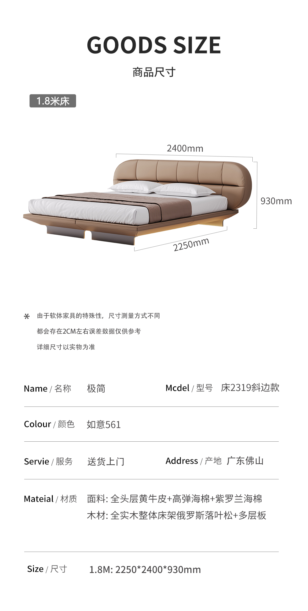 德卡图 现代简约 全头层黄牛皮 全实木整体床架俄罗斯落叶松+多层板+高弹海棉+紫罗兰海棉 1.8*2.0米悬浮床