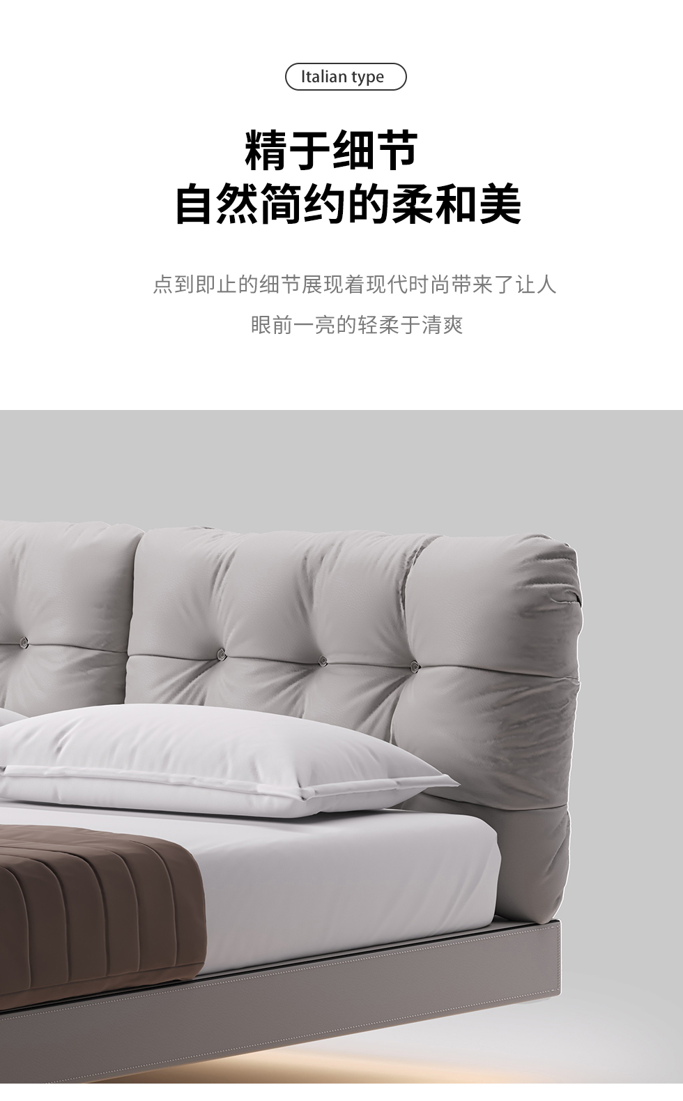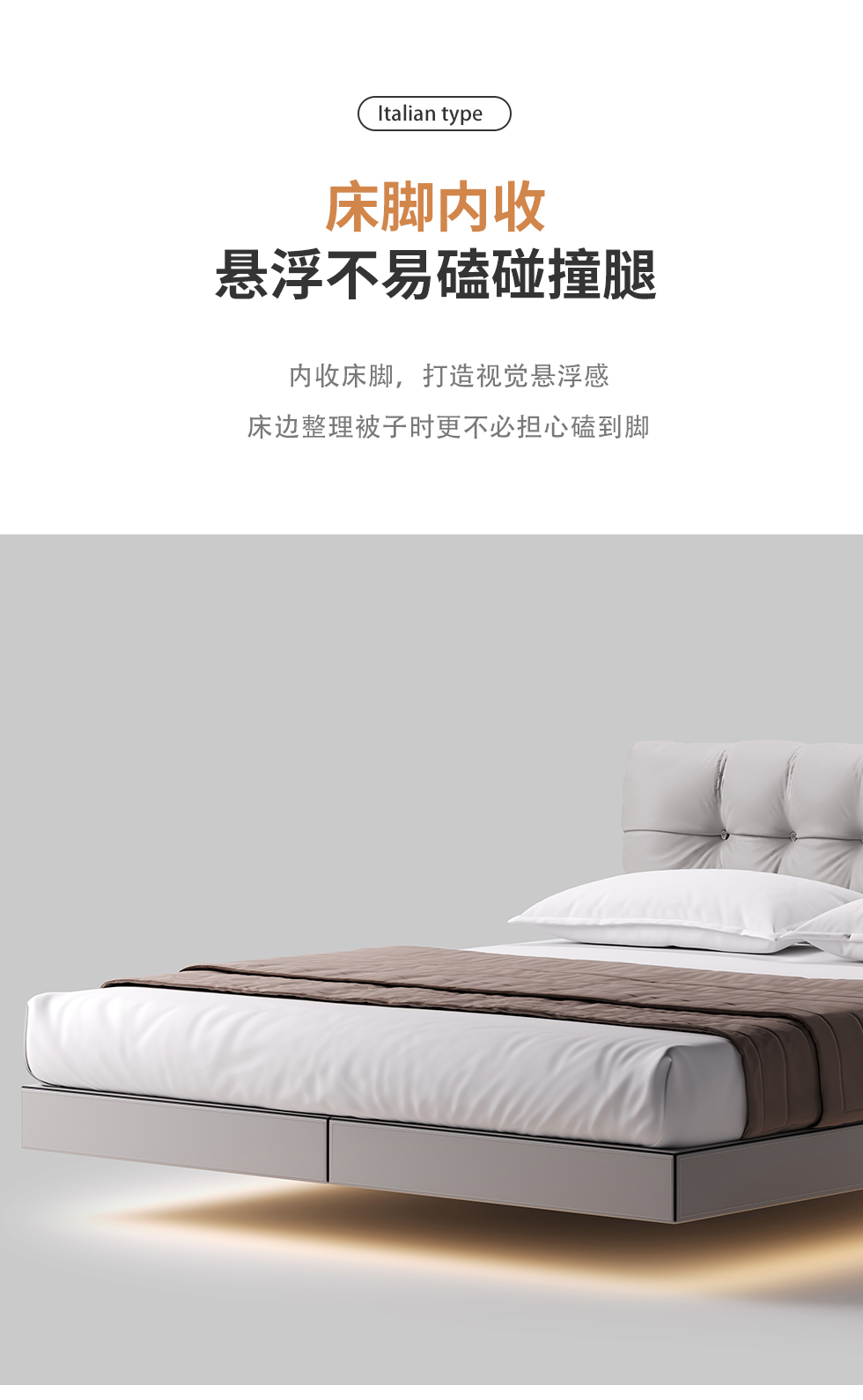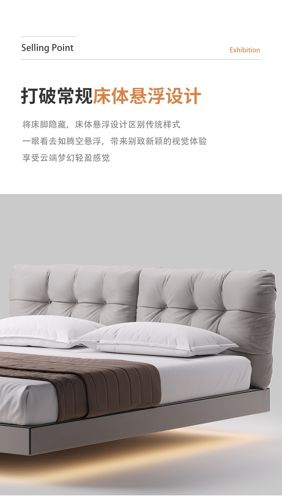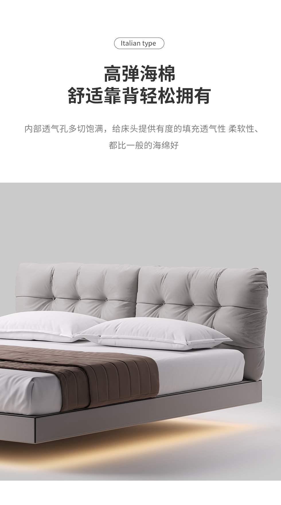 德卡图 现代简约 全头层黄牛皮 全实木整体床架俄罗斯落叶松+多层板+高弹海棉+紫罗兰海棉 1.8*2.0米悬浮床¥10841