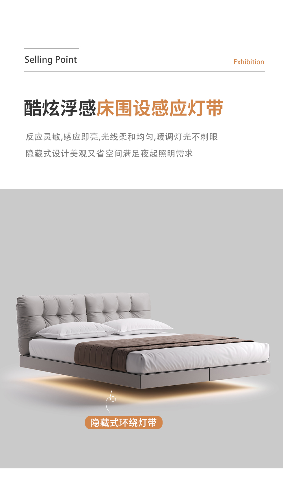 德卡图 现代简约 全头层黄牛皮 全实木整体床架俄罗斯落叶松+多层板+高弹海棉+紫罗兰海棉 1.8*2.0米悬浮床¥11652