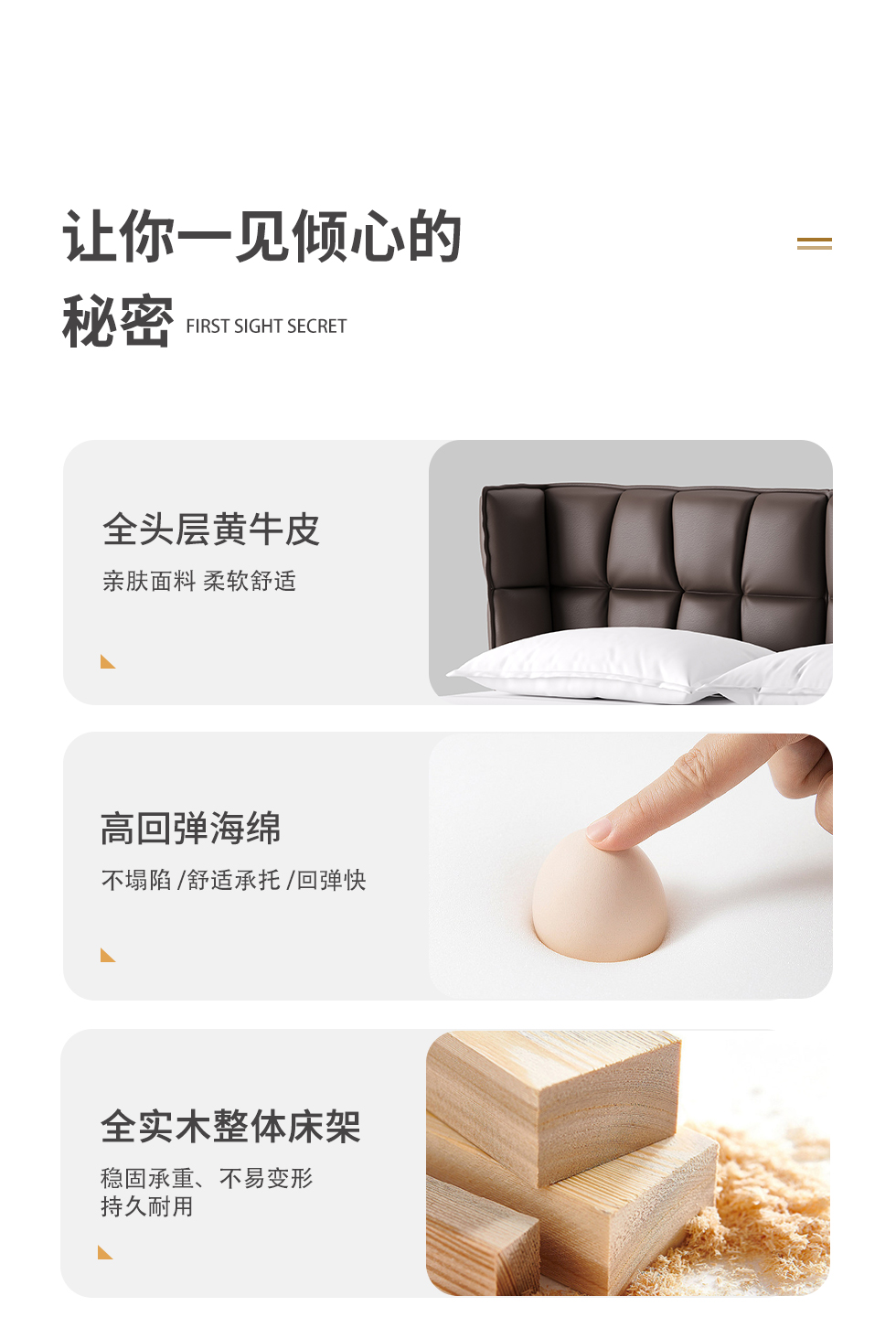 德卡图 现代简约 全头层黄牛皮 +棉麻布全实木整体床架俄罗斯落叶松+多层板+高弹海棉+紫罗兰海棉 1.8*2.0米悬浮床| 商品详情 | 规格参数 | 评价(0) | 购买咨询() | 产品实拍图 | 服务标准 |