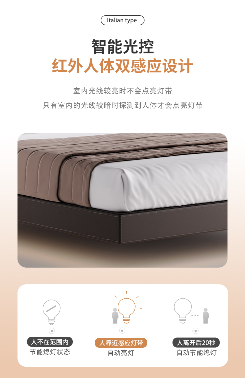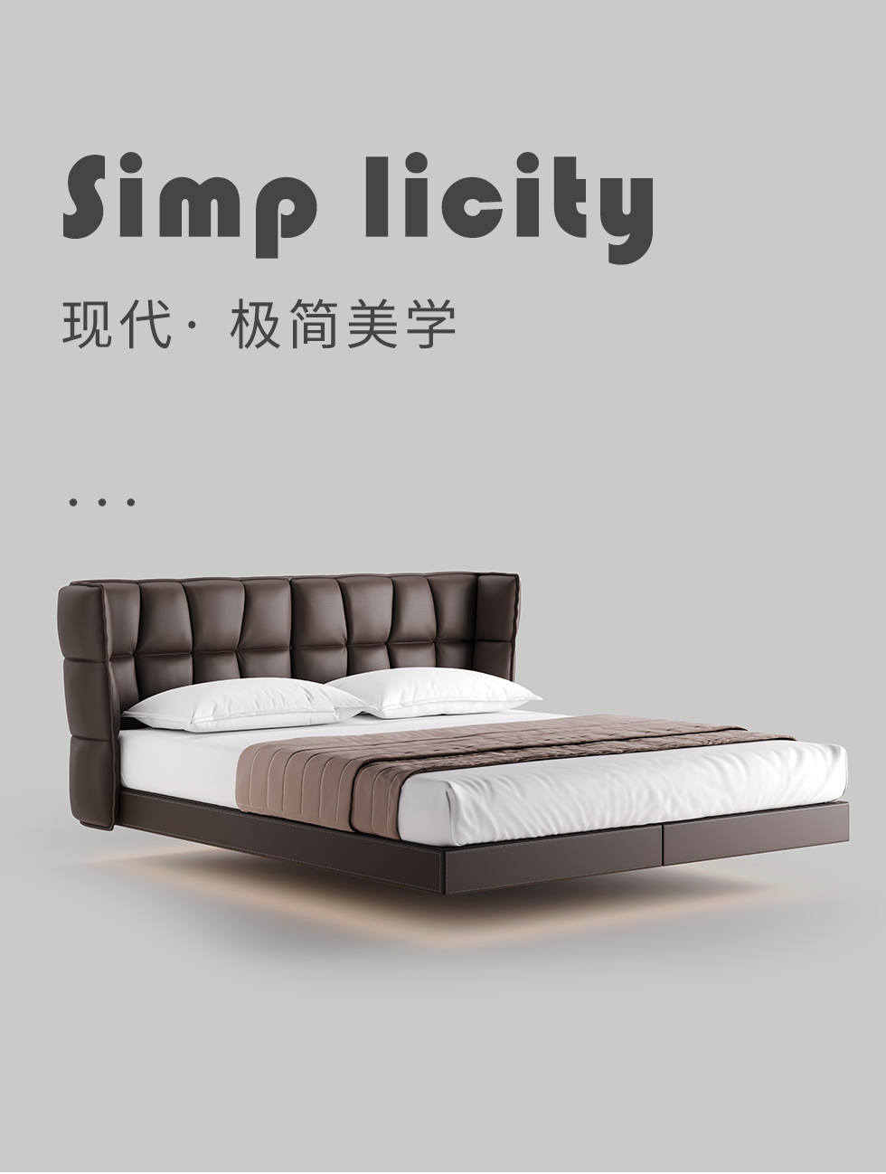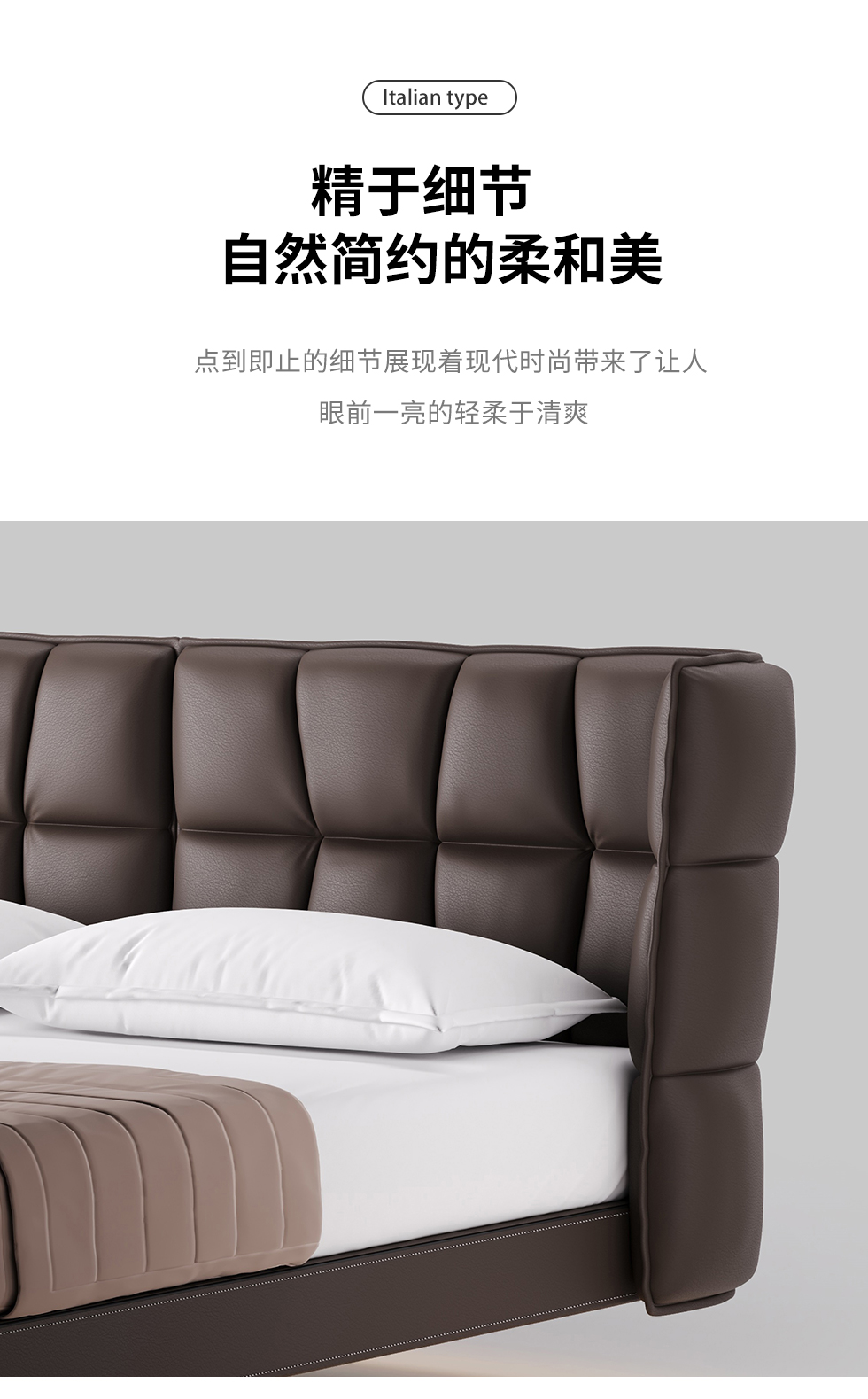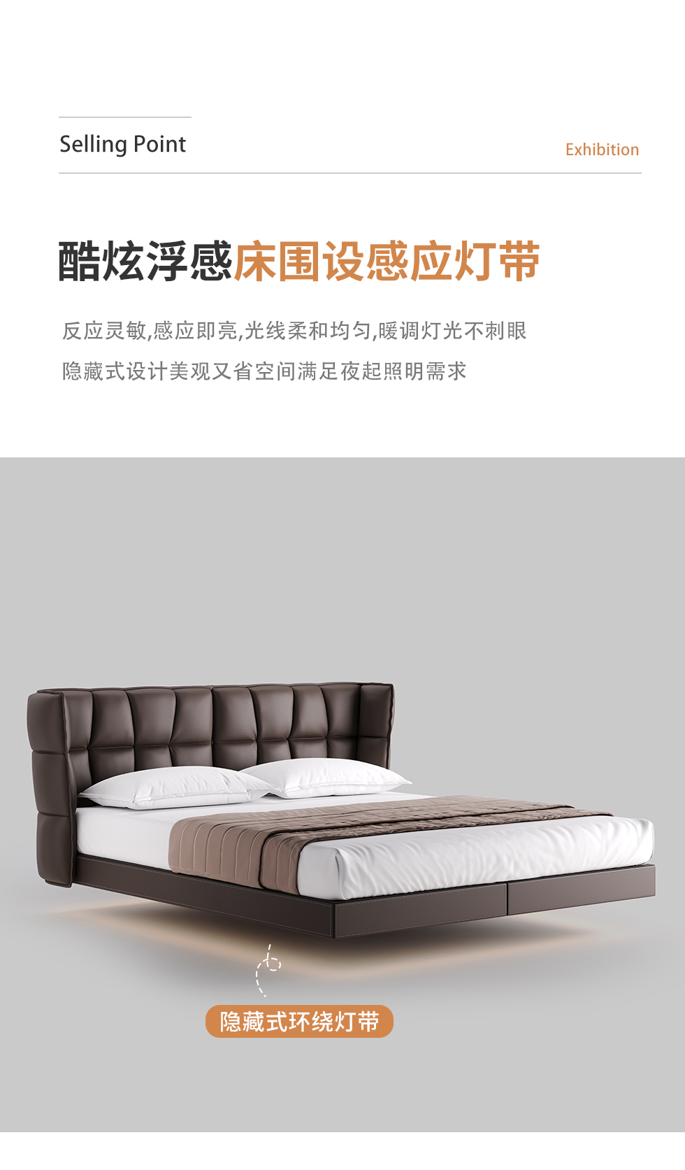 德卡图 现代简约 全头层黄牛皮 全实木整体床架俄罗斯落叶松+多层板+高弹海棉+紫罗兰海棉 1.8*2.0米悬浮床¥11652