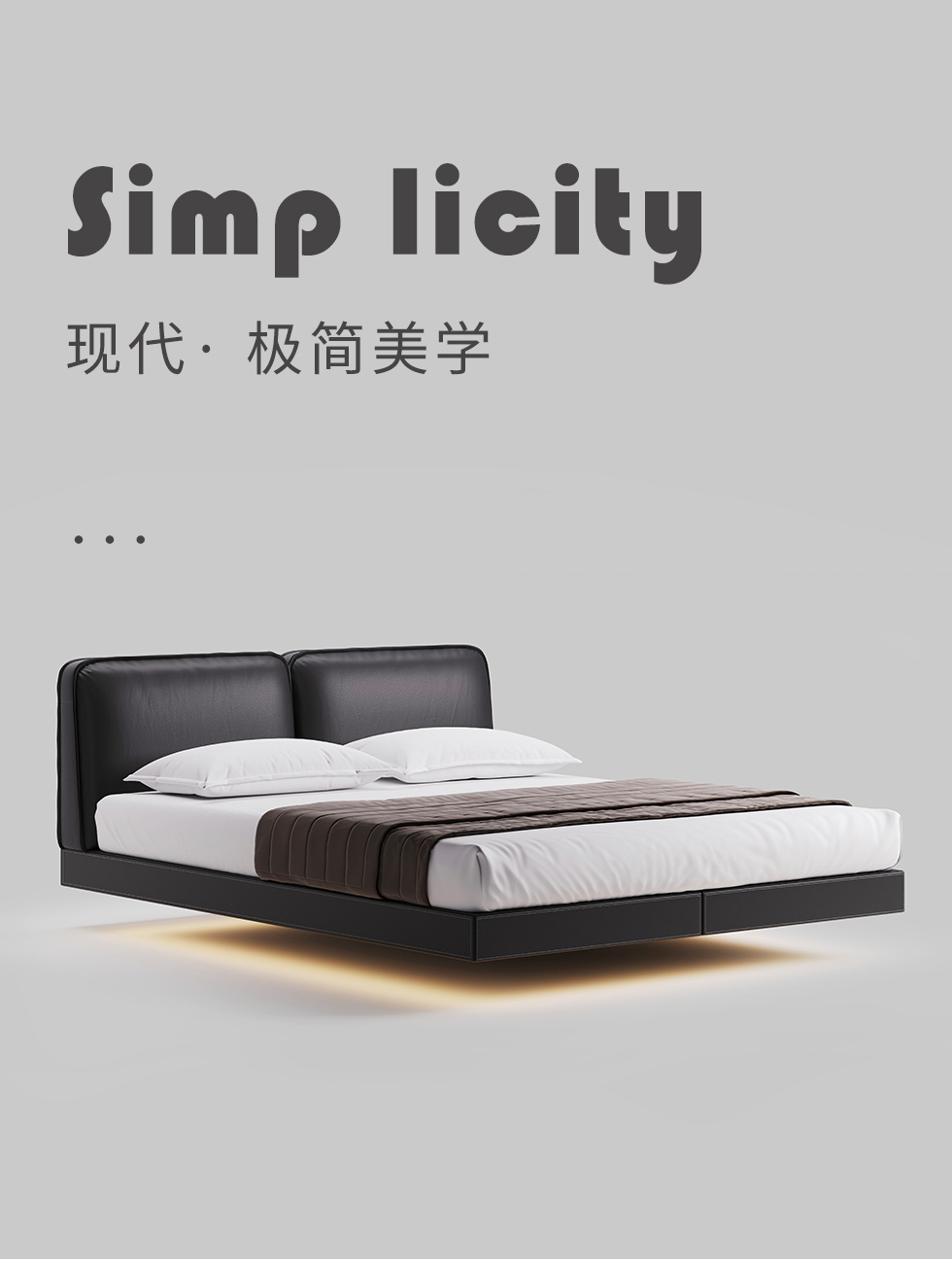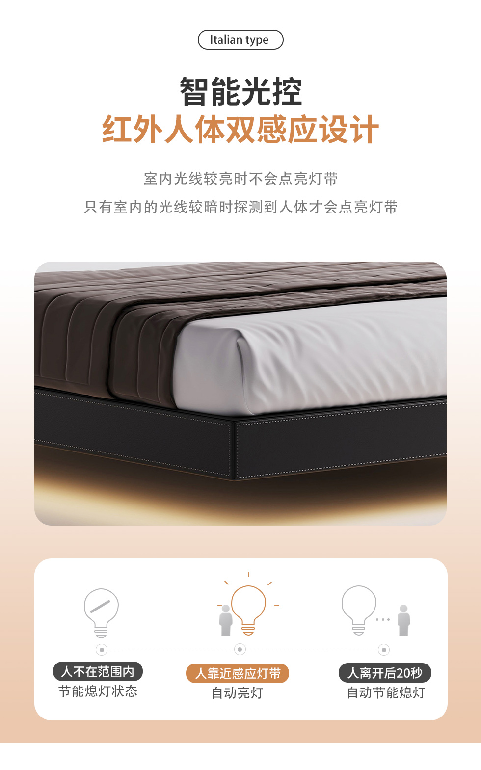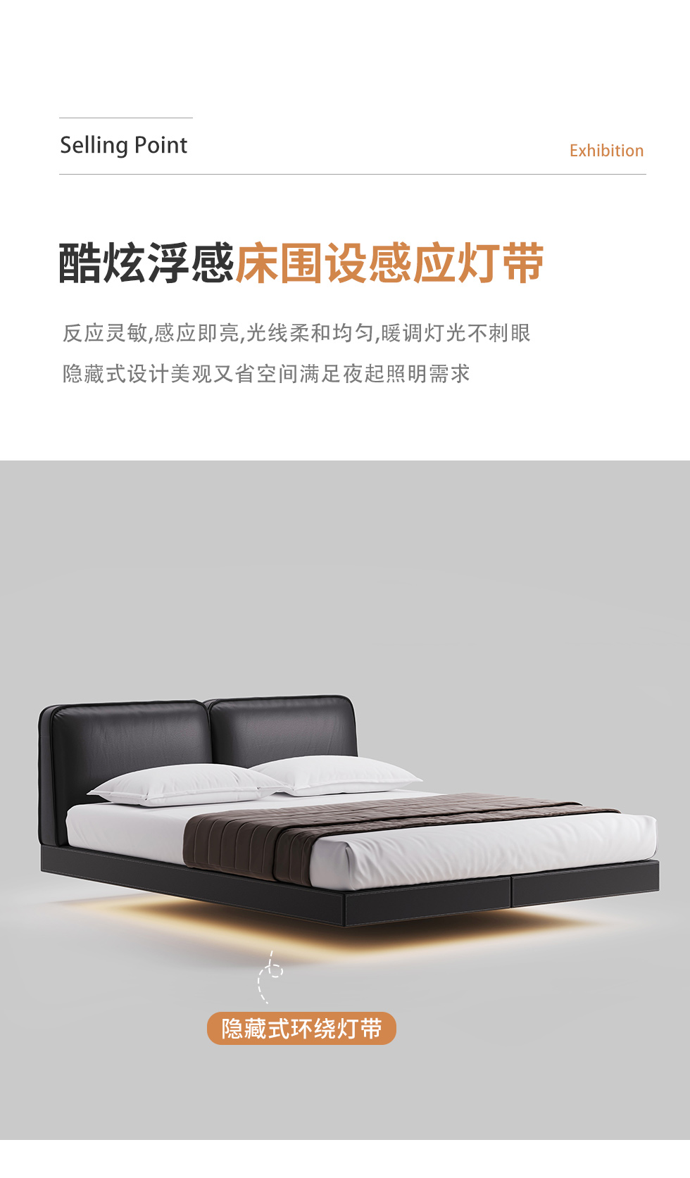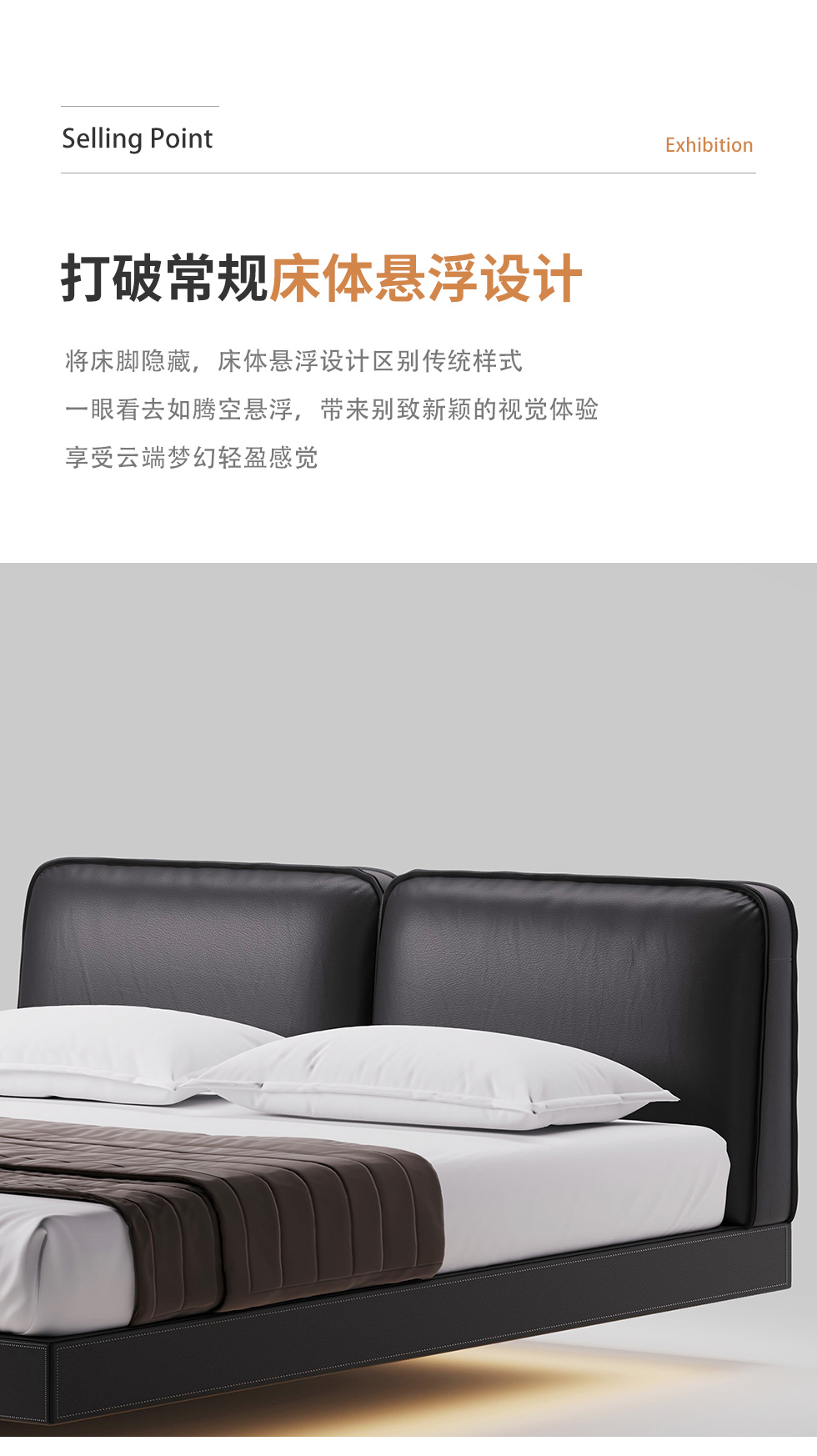 德卡图 现代简约 全头层黄牛皮 全实木整体床架俄罗斯落叶松+多层板+高弹海棉+紫罗兰海棉 1.8*2.0米悬浮床¥11652