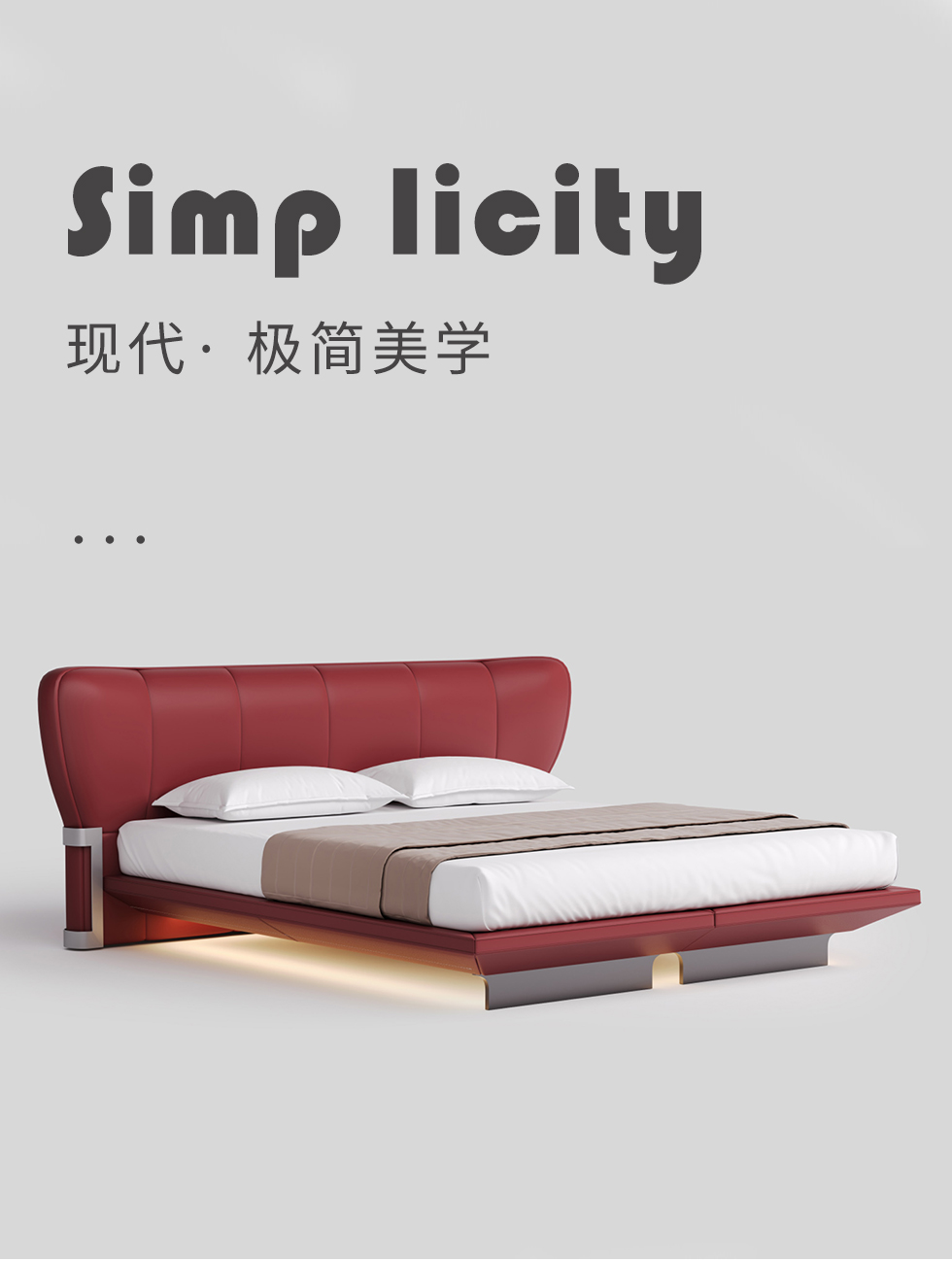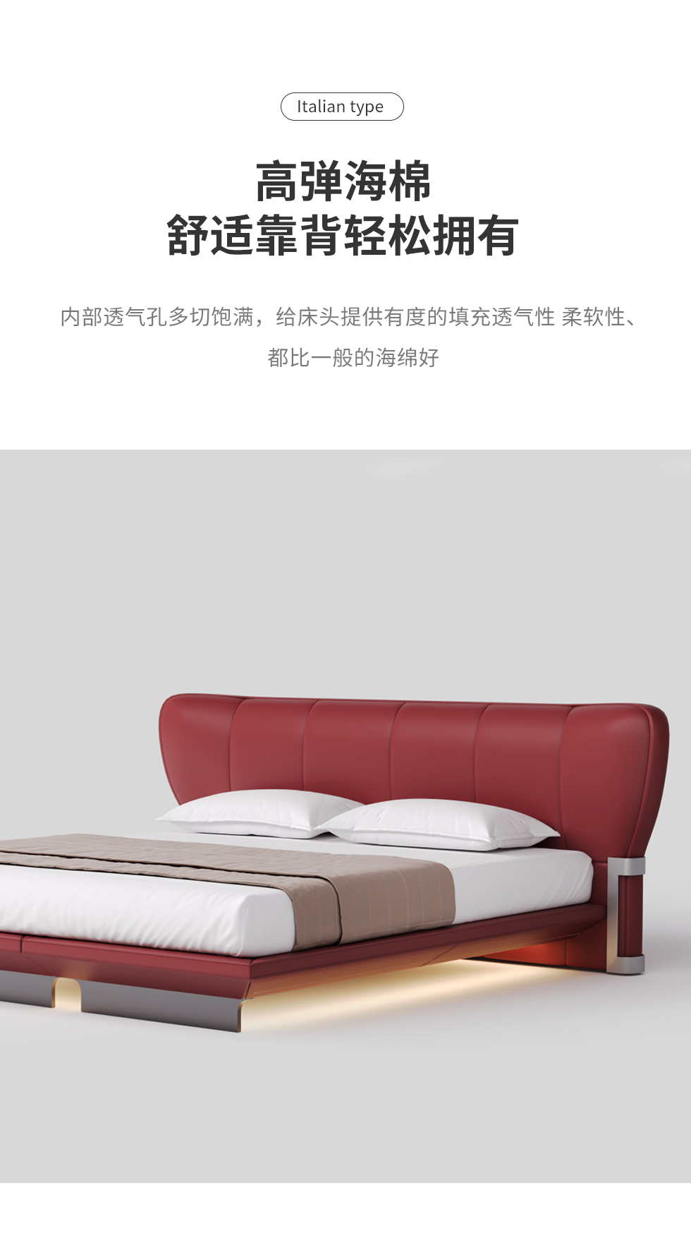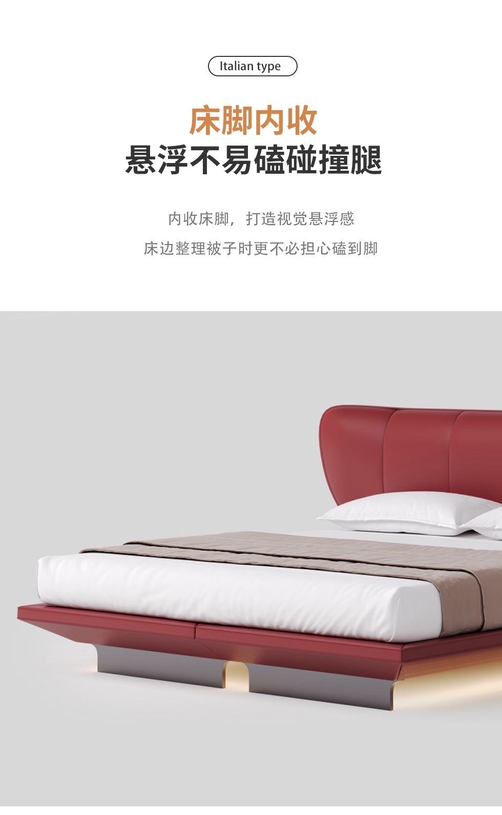 德卡图 现代简约 全头层黄牛皮 全实木整体床架俄罗斯落叶松+多层板+高弹海棉+紫罗兰海棉 1.8*2.0米悬浮床¥6505