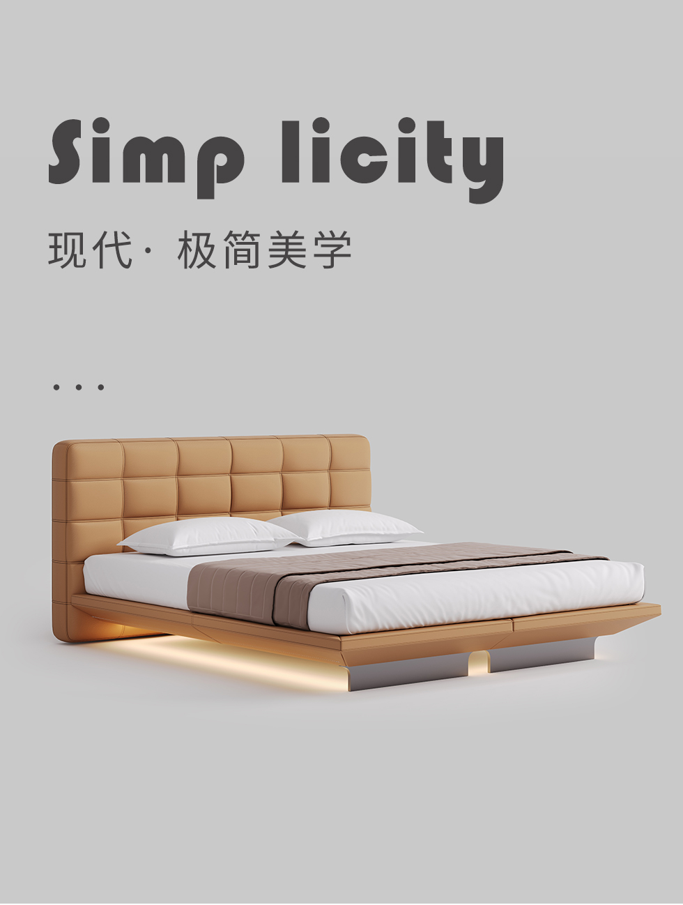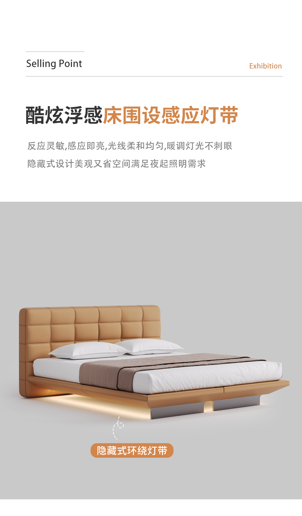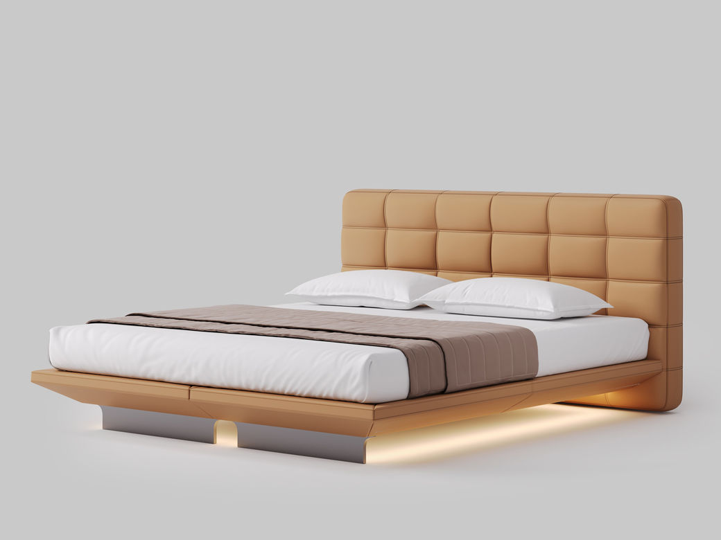 德卡图 现代简约 全头层黄牛皮 全实木整体床架俄罗斯落叶松+多层板+高弹海棉+紫罗兰海棉 1.8*2.0米悬浮床