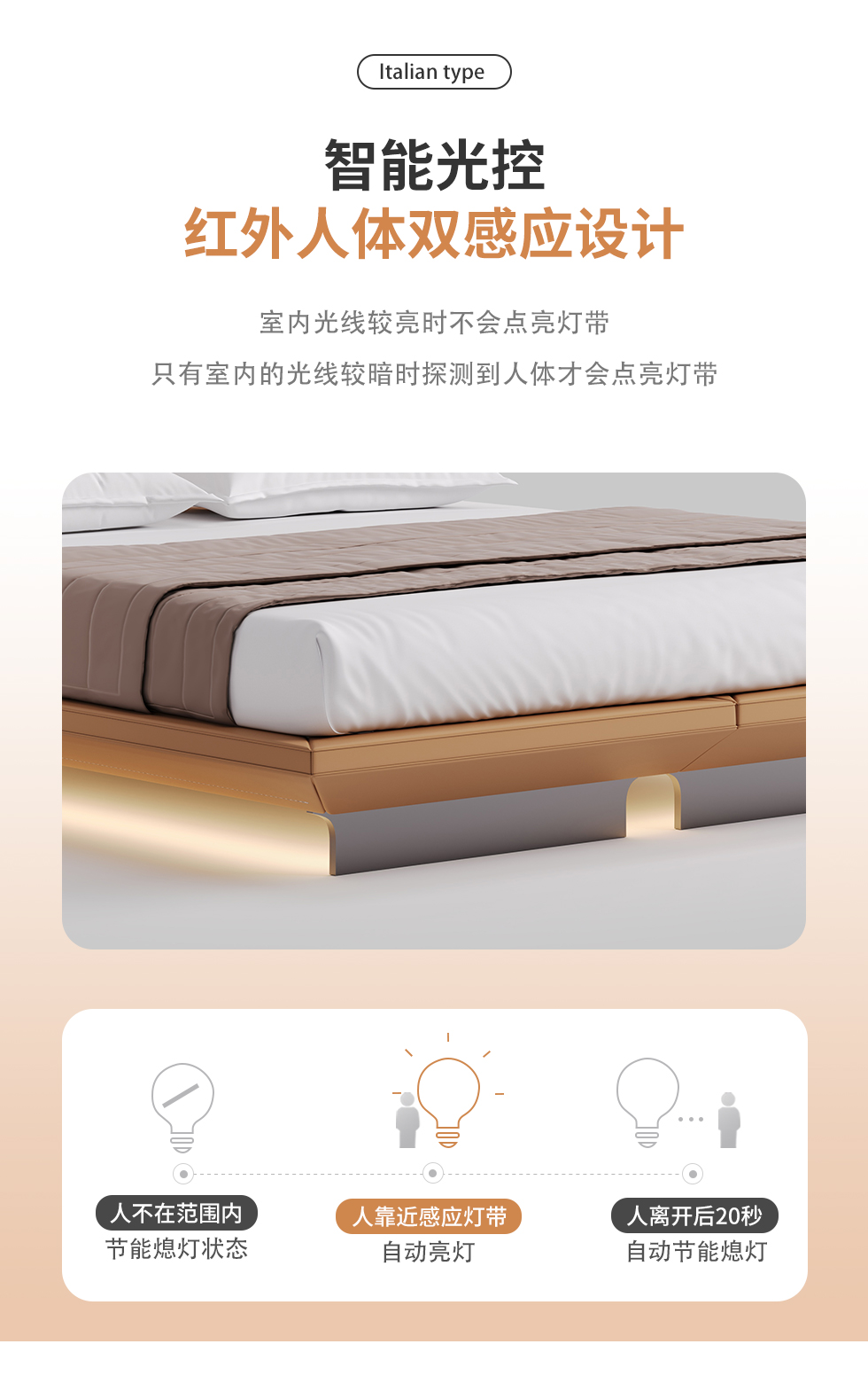 德卡图 现代简约 全头层黄牛皮 全实木整体床架俄罗斯落叶松+多层板+高弹海棉+紫罗兰海棉 1.8*2.0米悬浮床¥11652