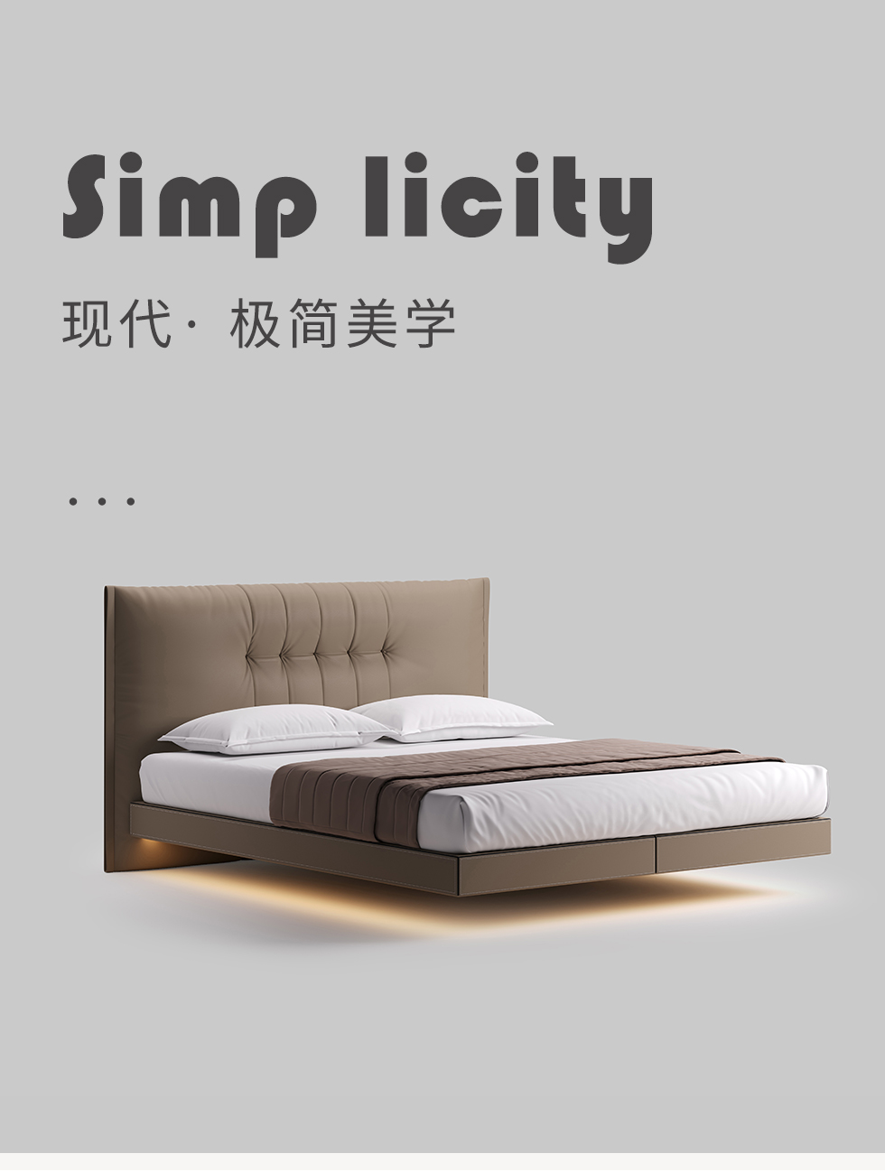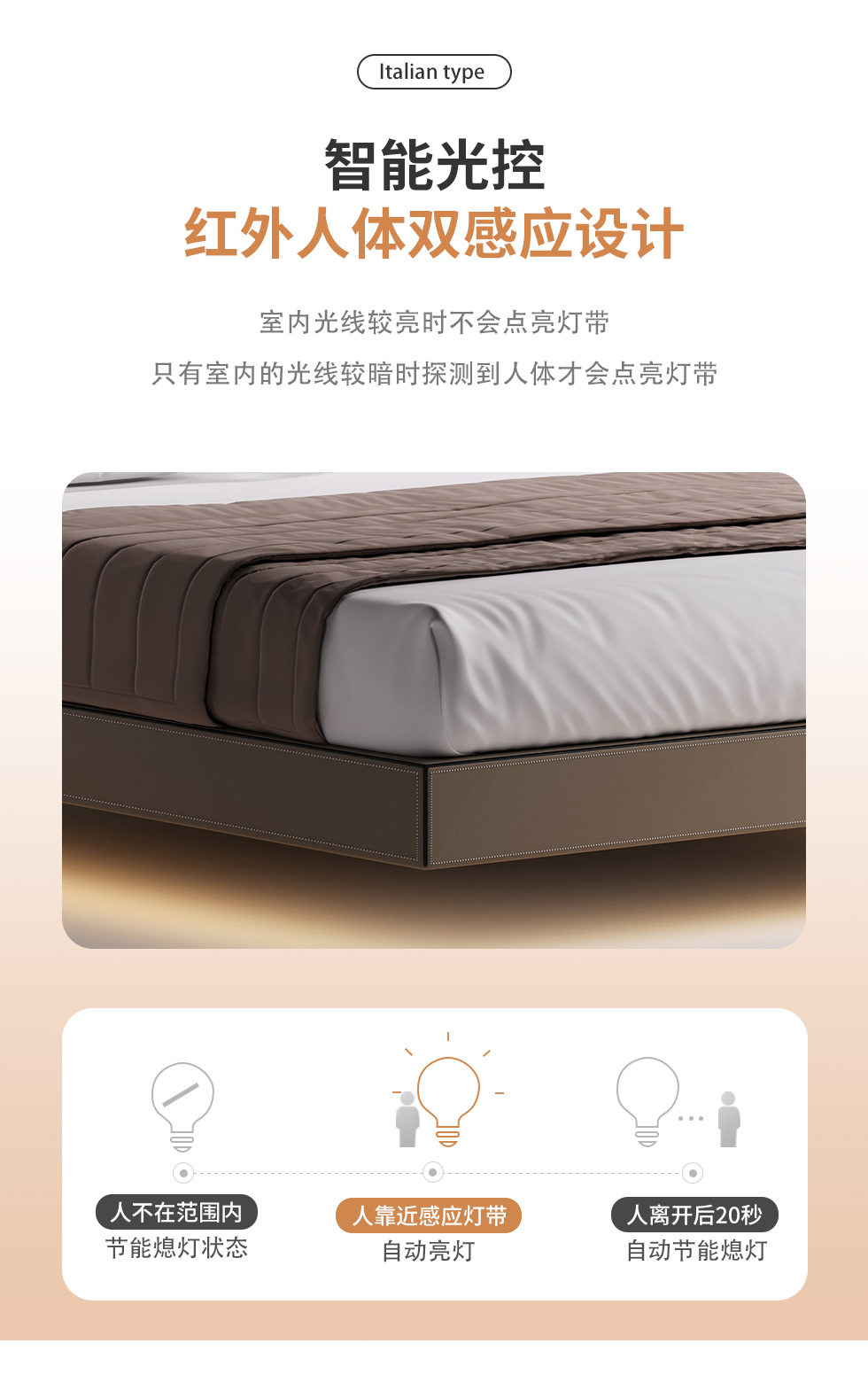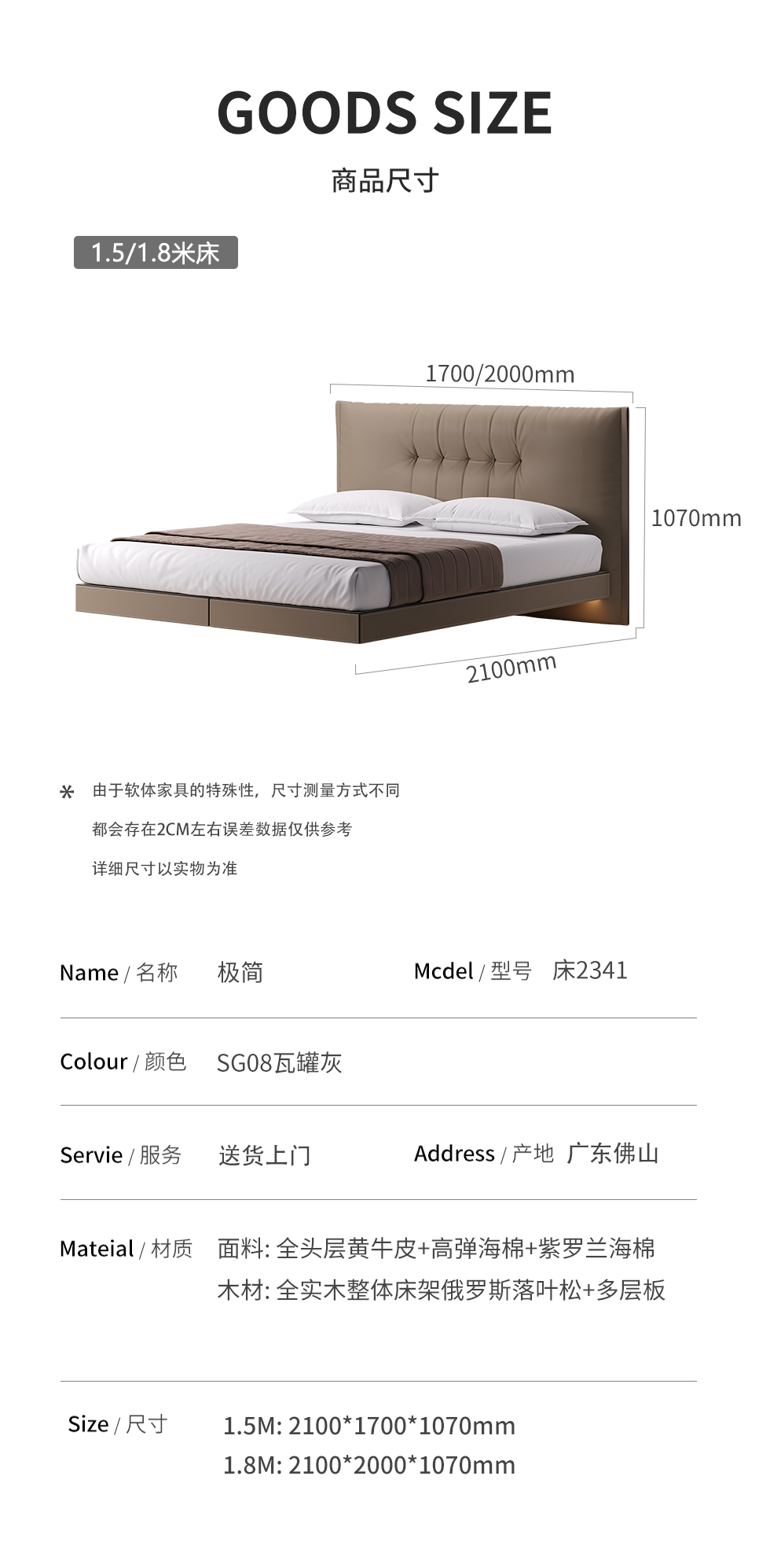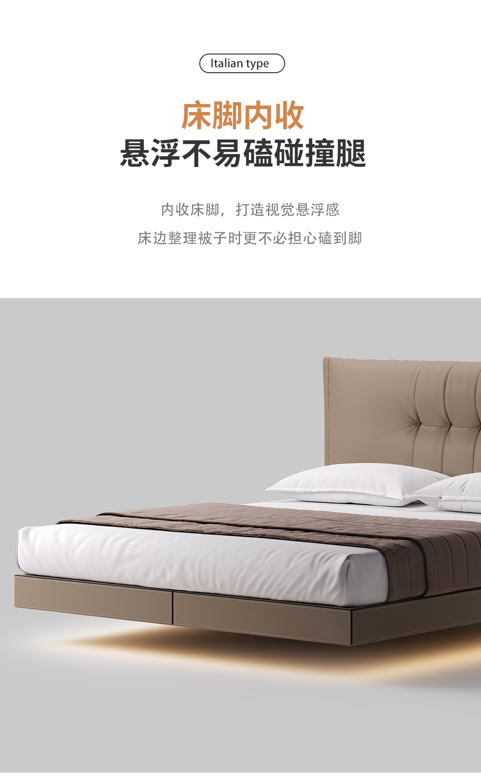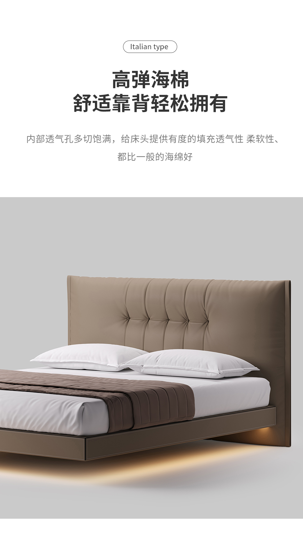 德卡图 现代简约 全头层黄牛皮 全实木整体床架俄罗斯落叶松+多层板+高弹海棉+紫罗兰海棉 1.8*2.0米悬浮床¥6505