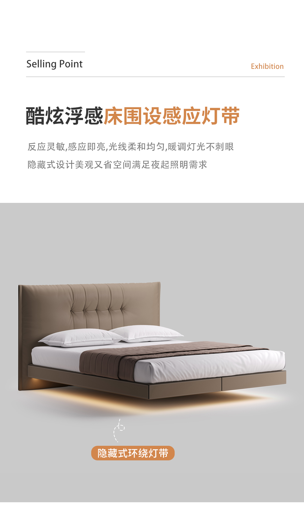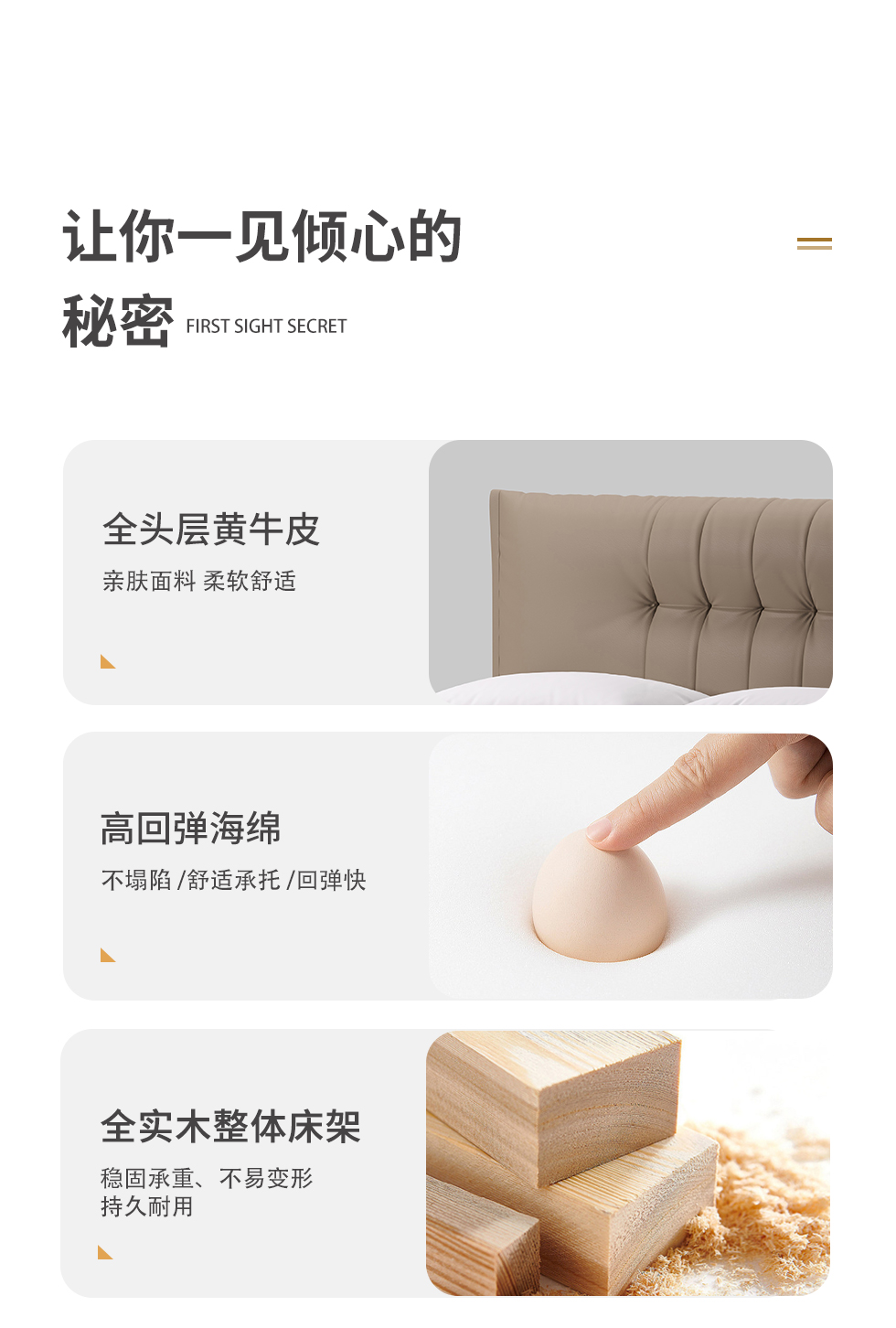 德卡图 现代简约 全头层黄牛皮 全实木整体床架俄罗斯落叶松+多层板+高弹海棉+紫罗兰海棉 1.8*2.0米悬浮床¥11652