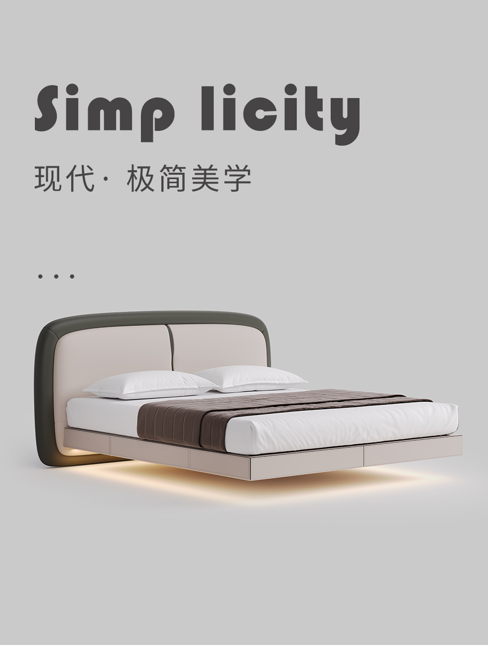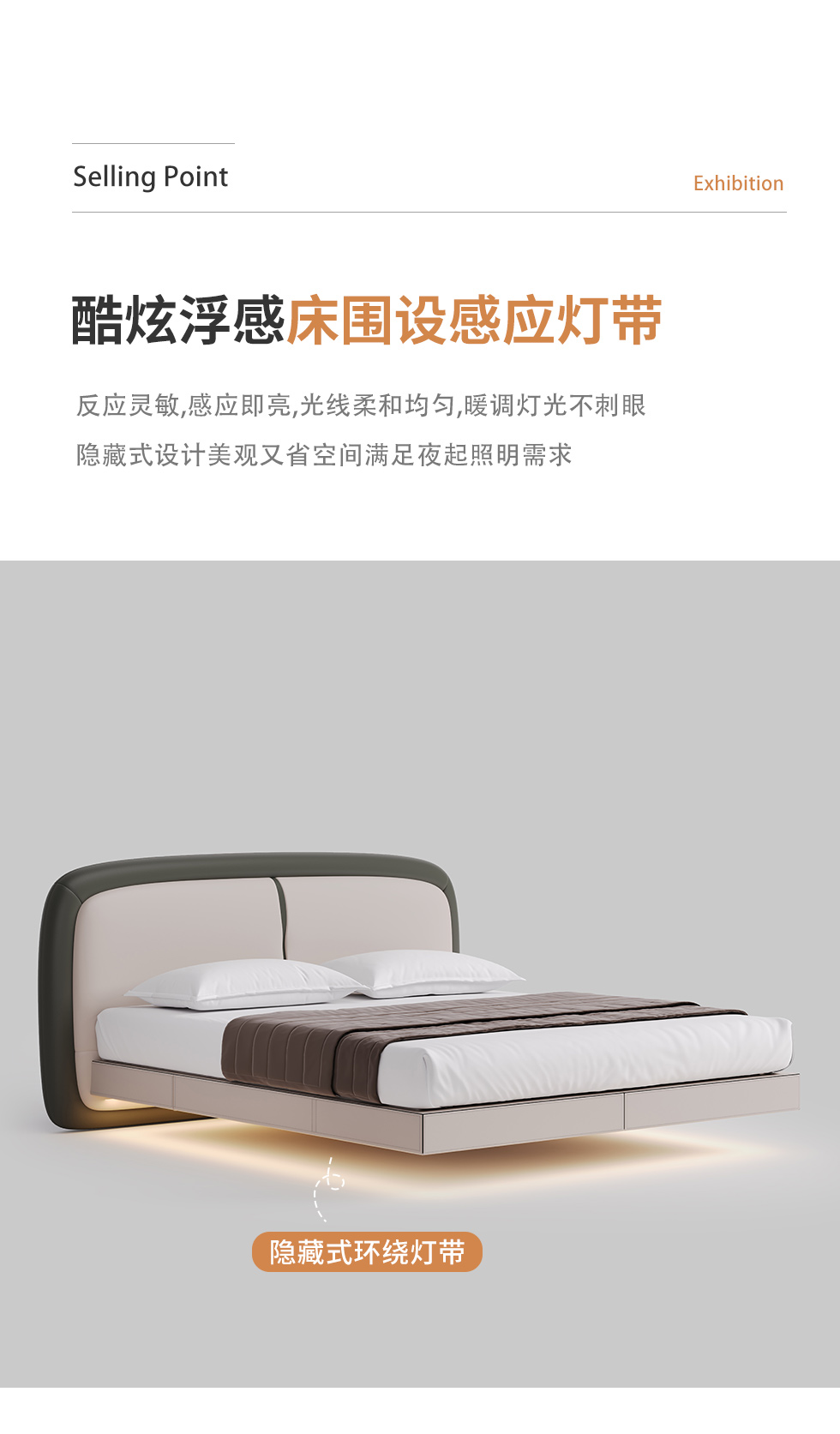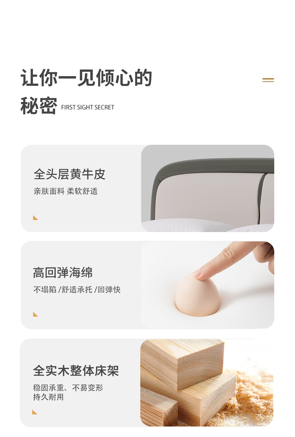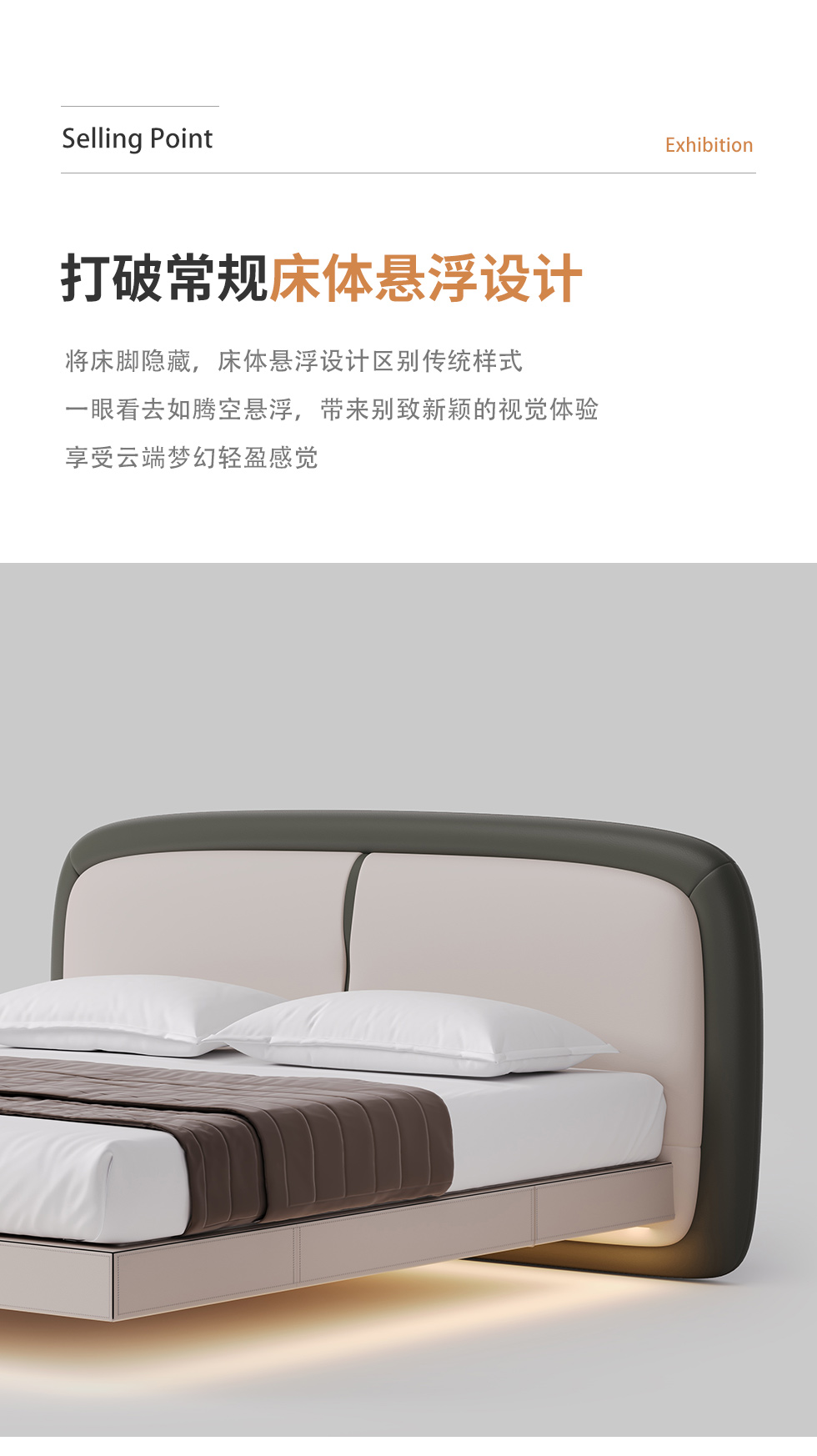 德卡图 现代简约 全头层黄牛皮 全实木整体床架俄罗斯落叶松+多层板+高弹海棉+紫罗兰海棉 1.8*2.0米悬浮床