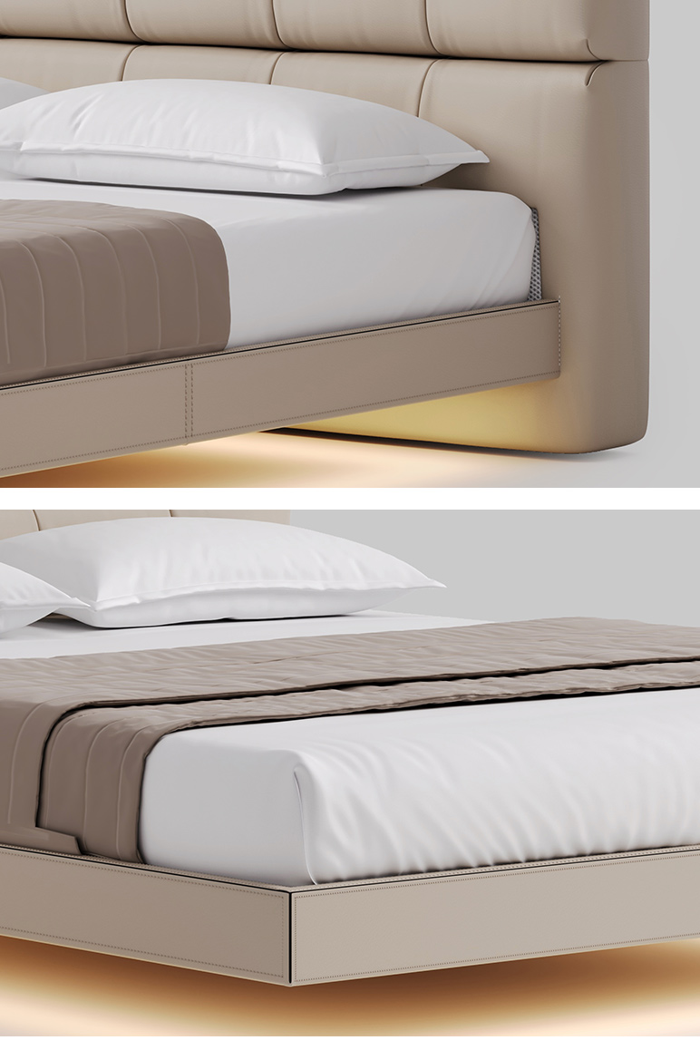 德卡图 现代简约 全头层黄牛皮 全实木整体床架俄罗斯落叶松+多层板+高弹海棉+紫罗兰海棉 1.8*2.0米悬浮床¥6505