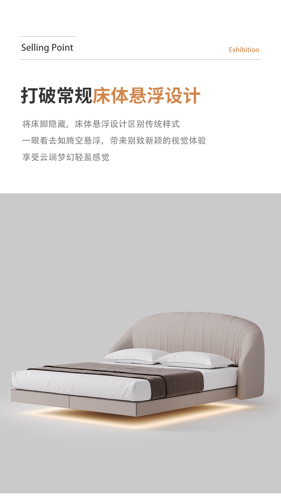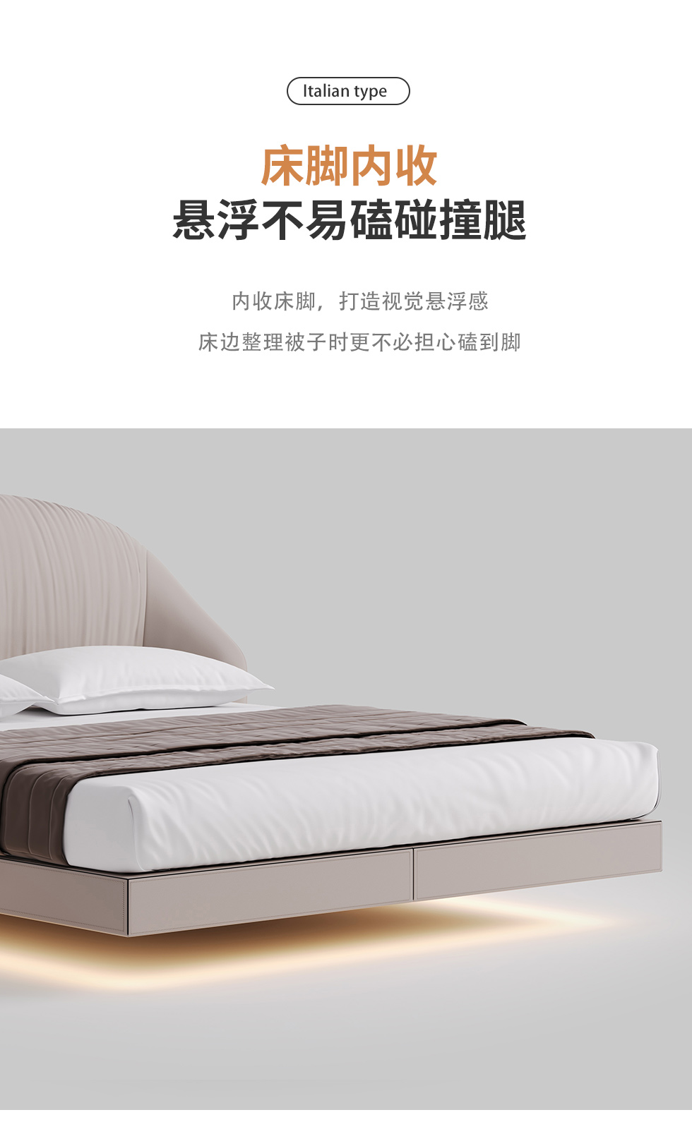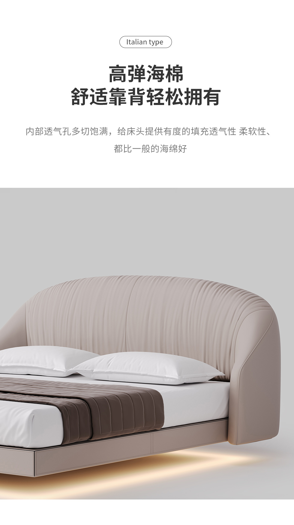 德卡图 现代简约 全头层黄牛皮 全实木整体床架俄罗斯落叶松+多层板+高弹海棉+紫罗兰海棉 1.8*2.0米悬浮床¥11652