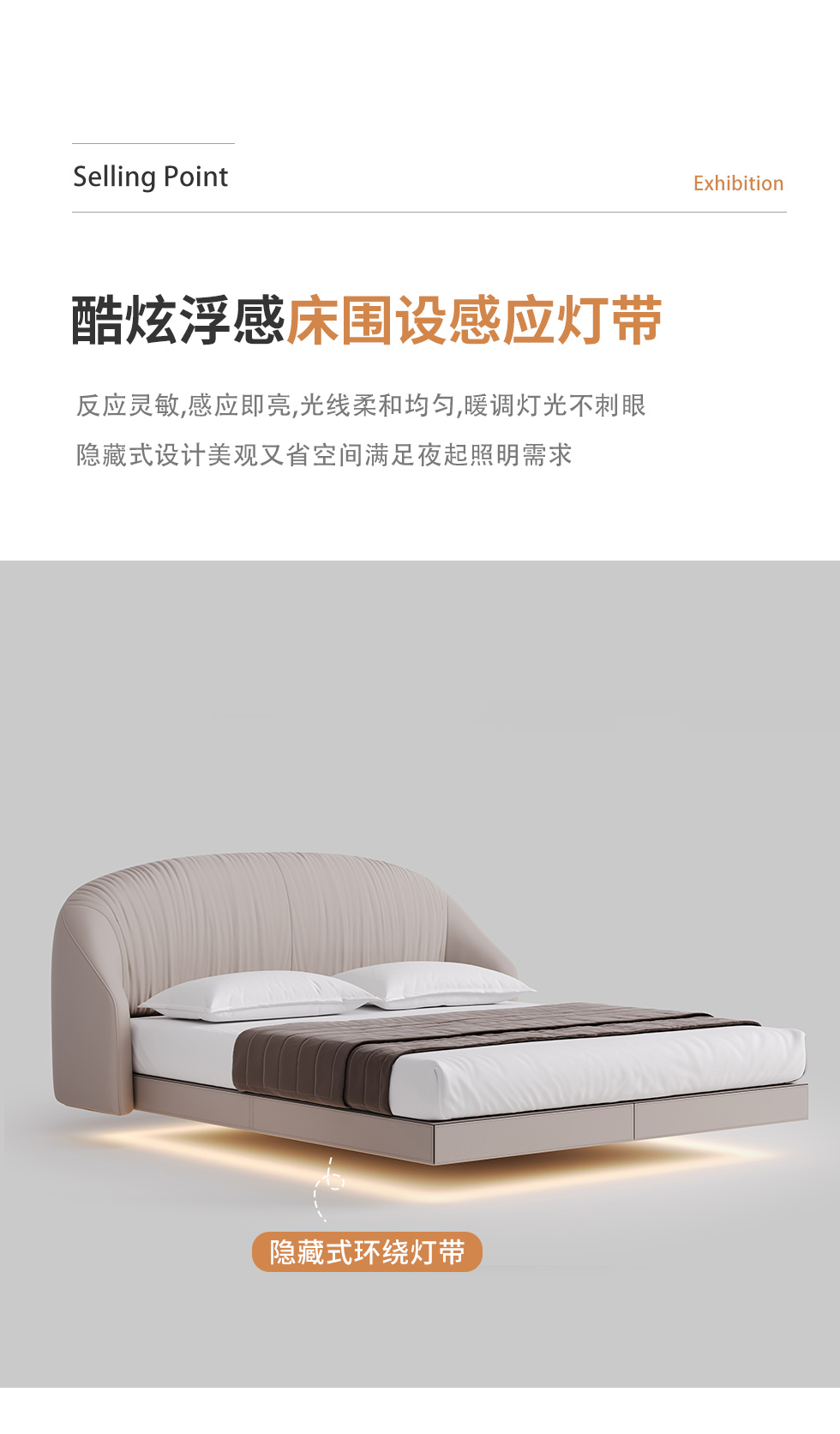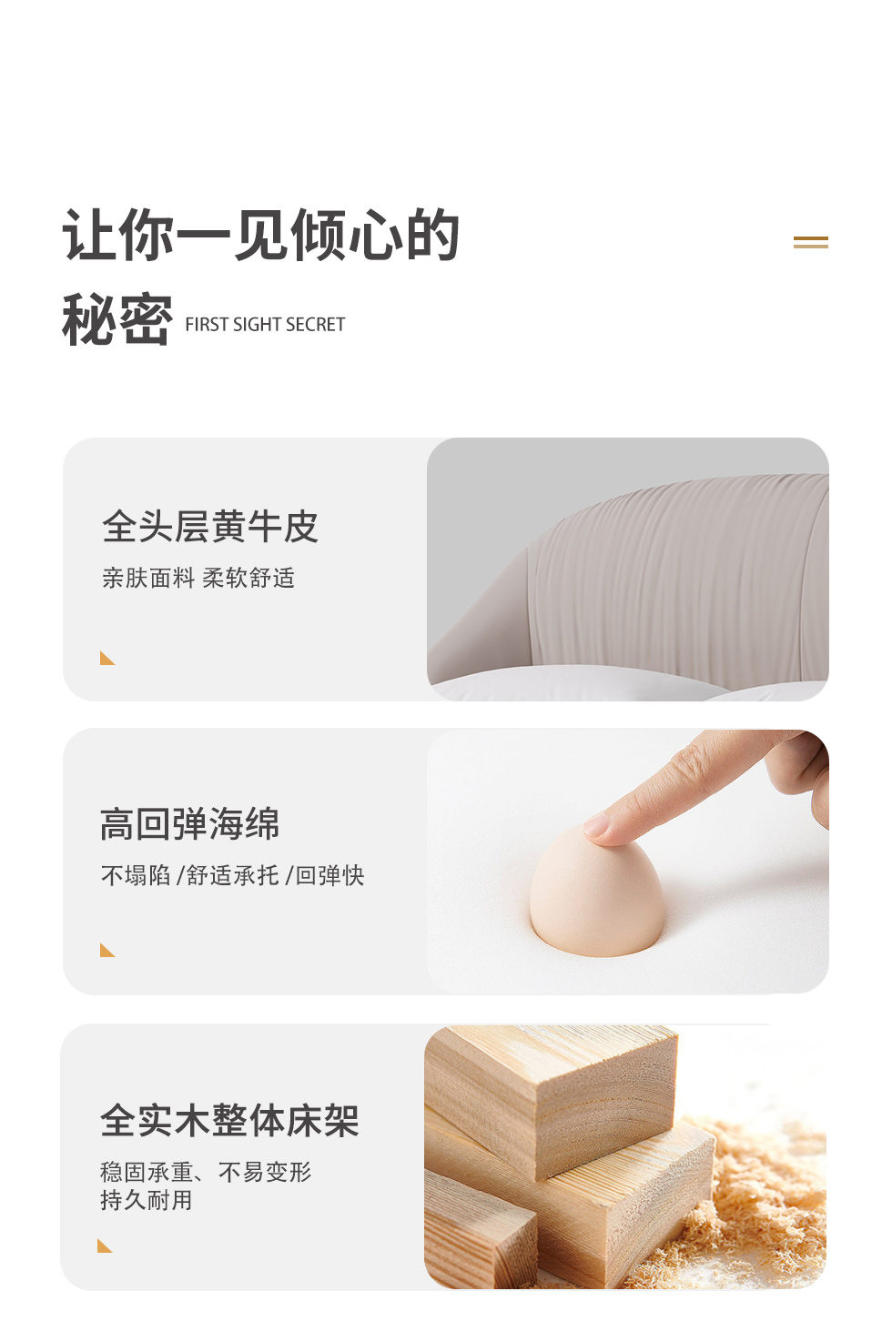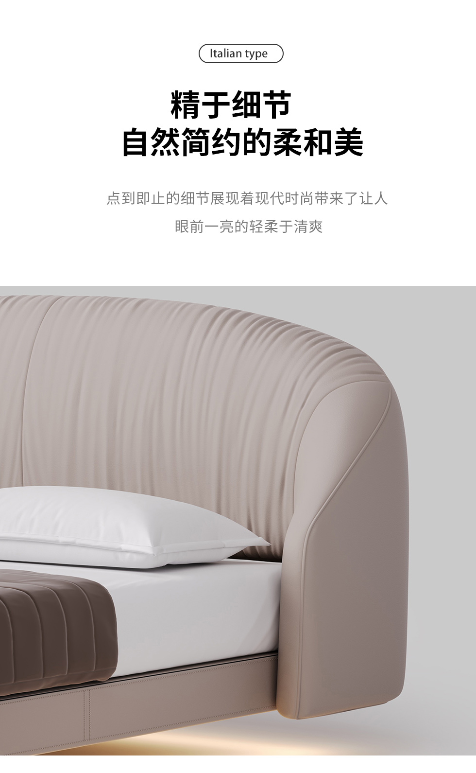 德卡图 现代简约 全头层黄牛皮 全实木整体床架俄罗斯落叶松+多层板+高弹海棉+紫罗兰海棉 1.8*2.0米悬浮床¥11652