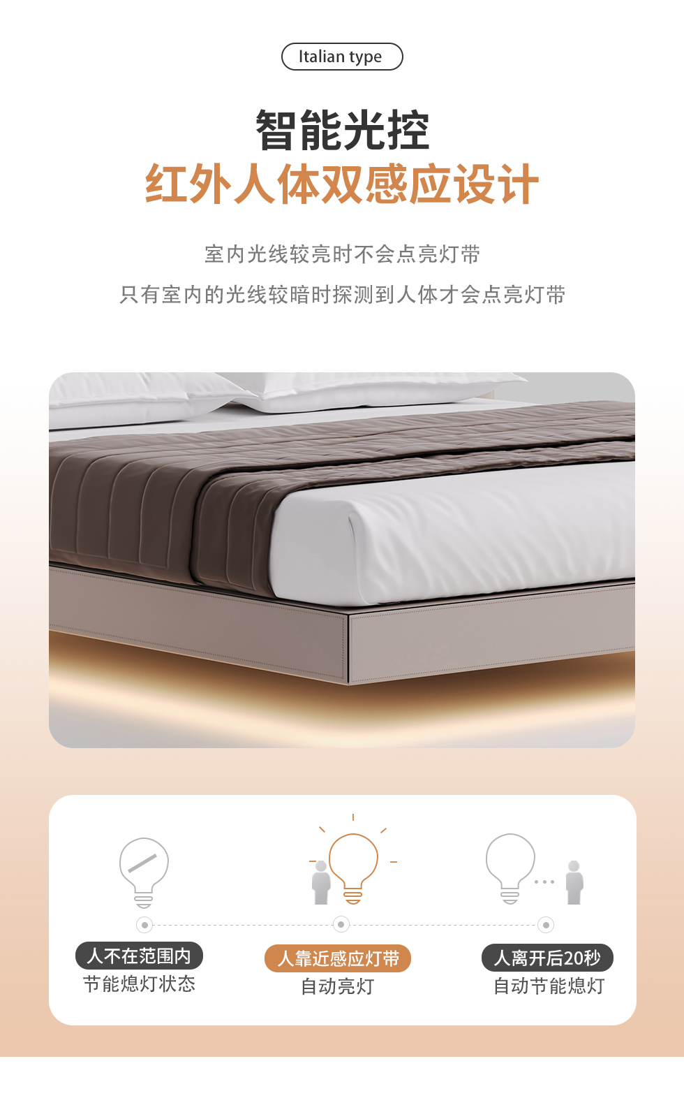 德卡图 现代简约 全头层黄牛皮 全实木整体床架俄罗斯落叶松+多层板+高弹海棉+紫罗兰海棉 1.8*2.0米悬浮床¥6505