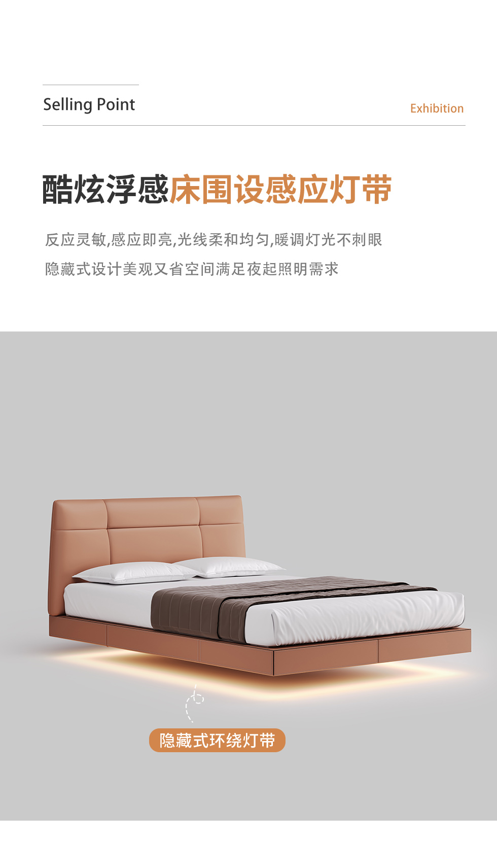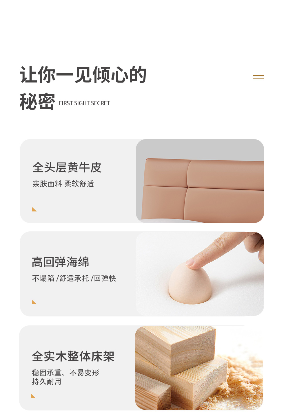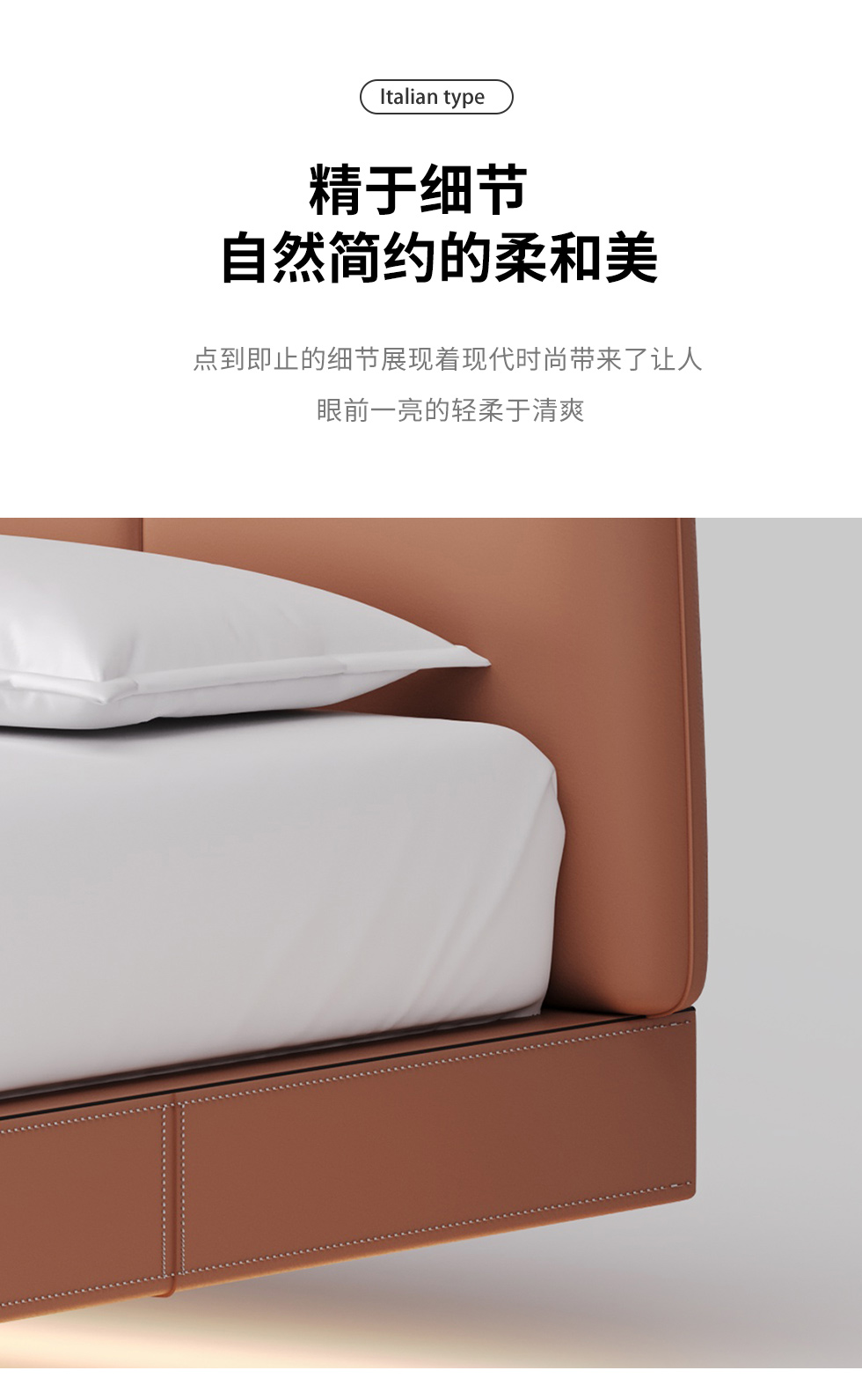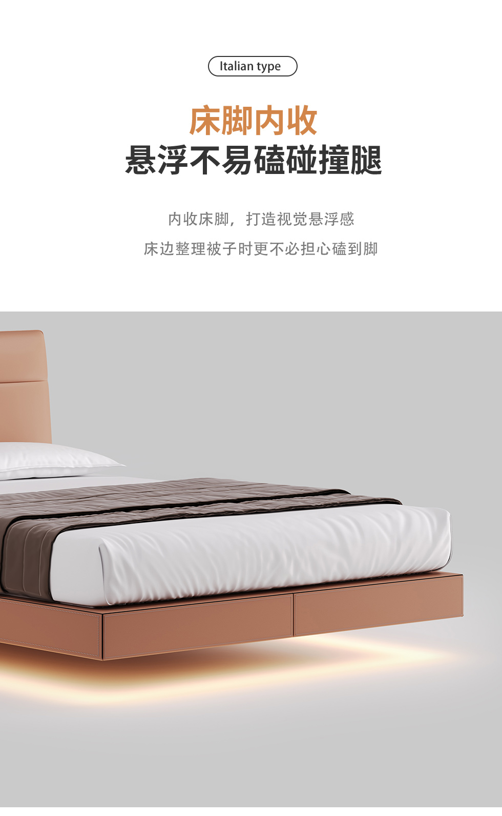 德卡图 现代简约 全头层黄牛皮 全实木整体床架俄罗斯落叶松+多层板+高弹海棉+紫罗兰海棉 1.8*2.0米悬浮床¥11652