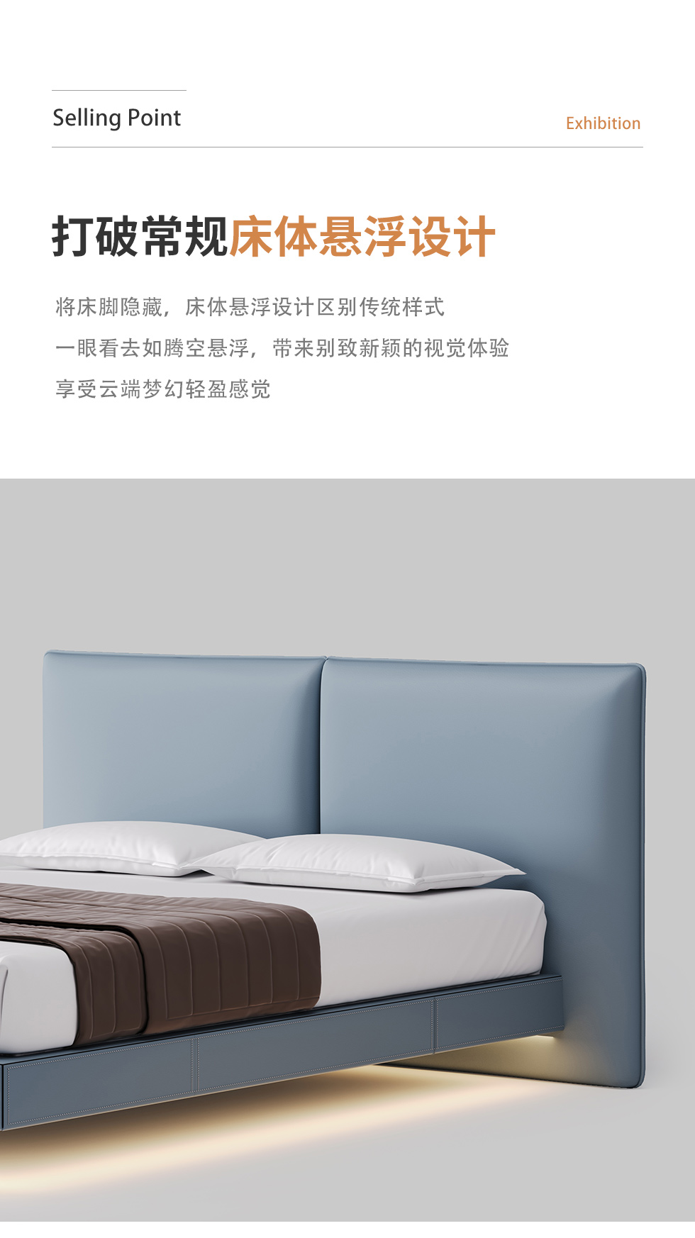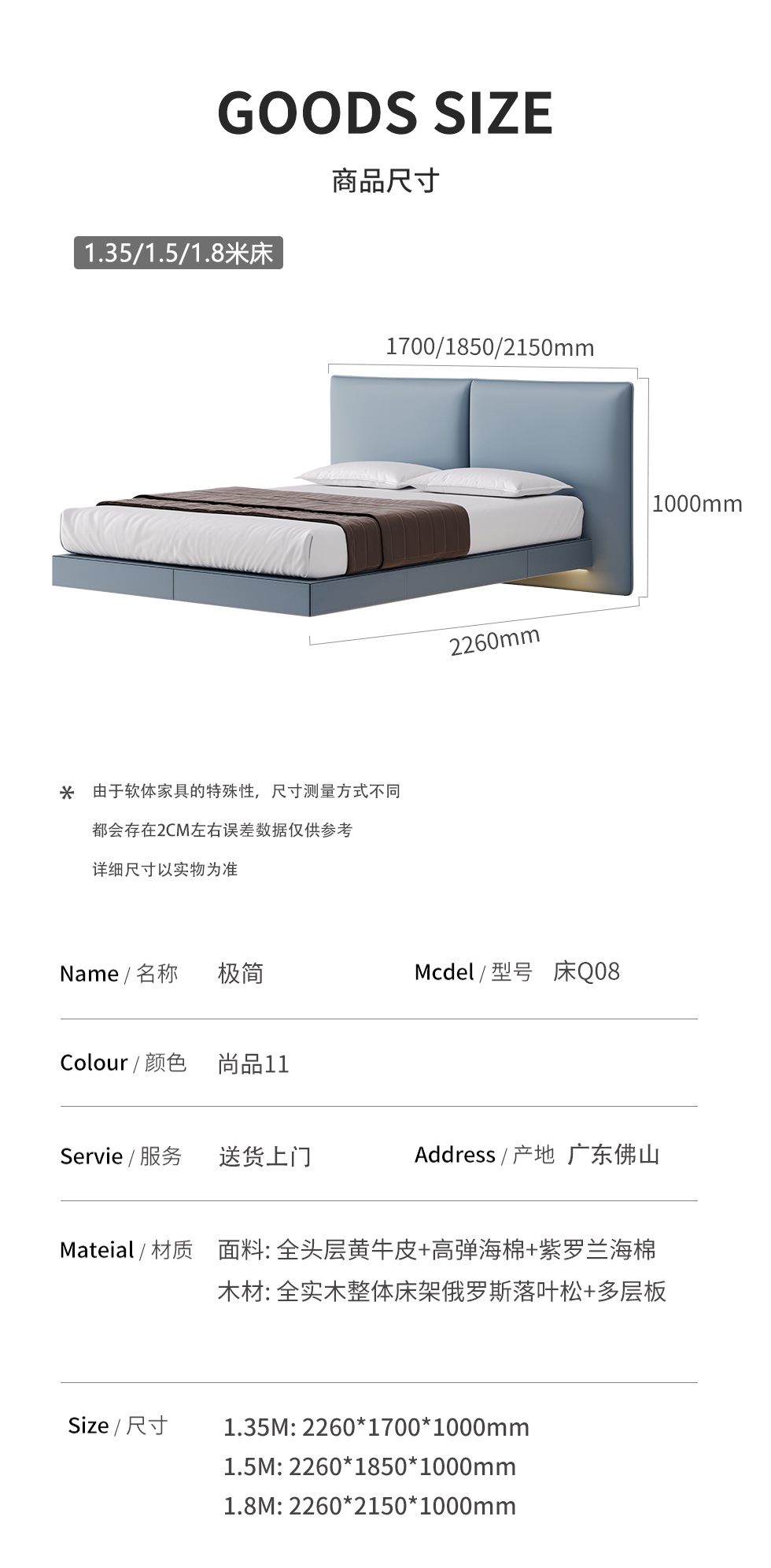 德卡图 现代简约 全头层黄牛皮 +棉麻布全实木整体床架俄罗斯落叶松+多层板+高弹海棉+紫罗兰海棉 1.8*2.0米悬浮床| 商品详情 | 规格参数 | 评价(0) | 购买咨询() | 产品实拍图 | 服务标准 |