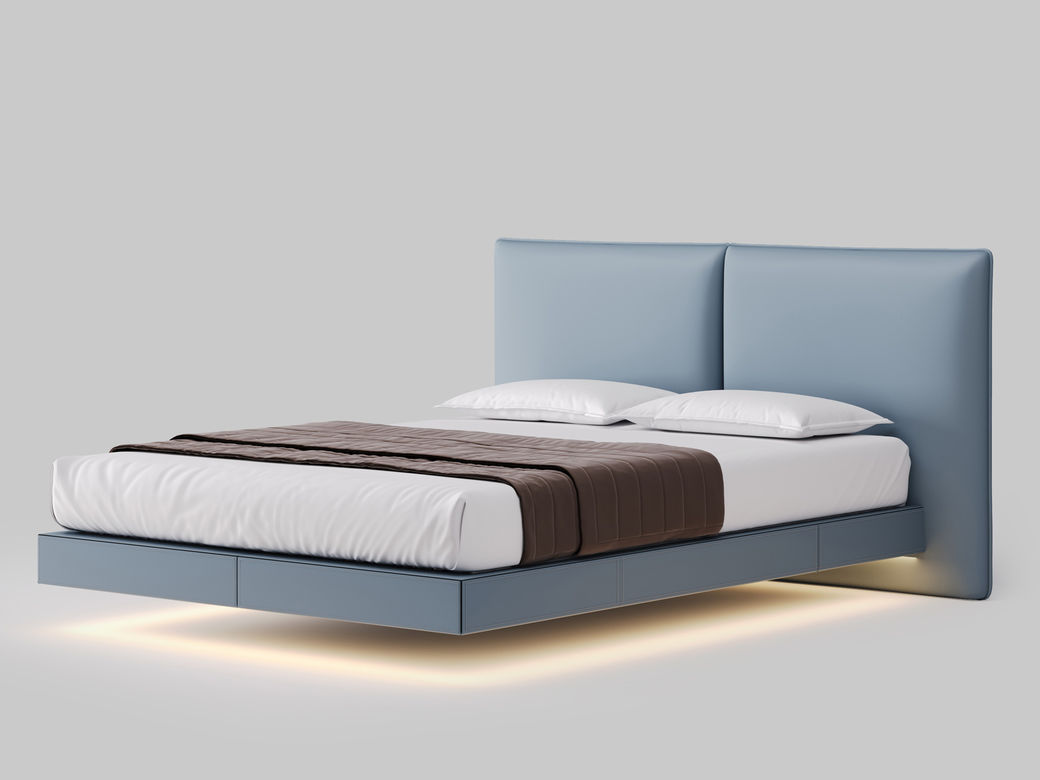 德卡图 现代简约 全头层黄牛皮 全实木整体床架俄罗斯落叶松+多层板+高弹海棉+紫罗兰海棉 1.8*2.0米悬浮床¥7044