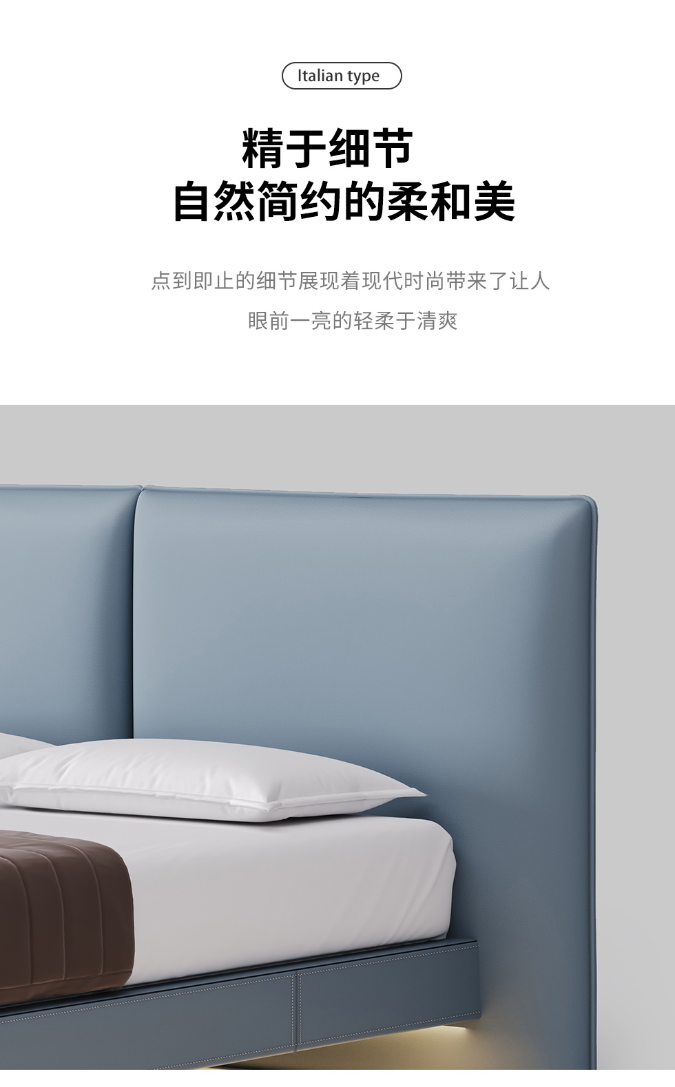 德卡图 现代简约 全头层黄牛皮 +棉麻布全实木整体床架俄罗斯落叶松+多层板+高弹海棉+紫罗兰海棉 1.8*2.0米悬浮床| 商品详情 | 规格参数 | 评价(0) | 购买咨询() | 产品实拍图 | 服务标准 |