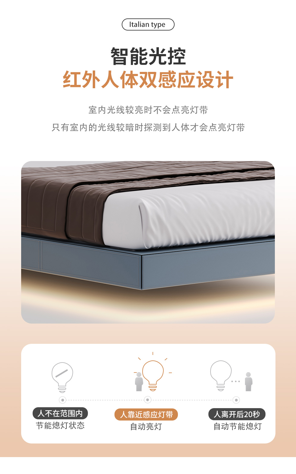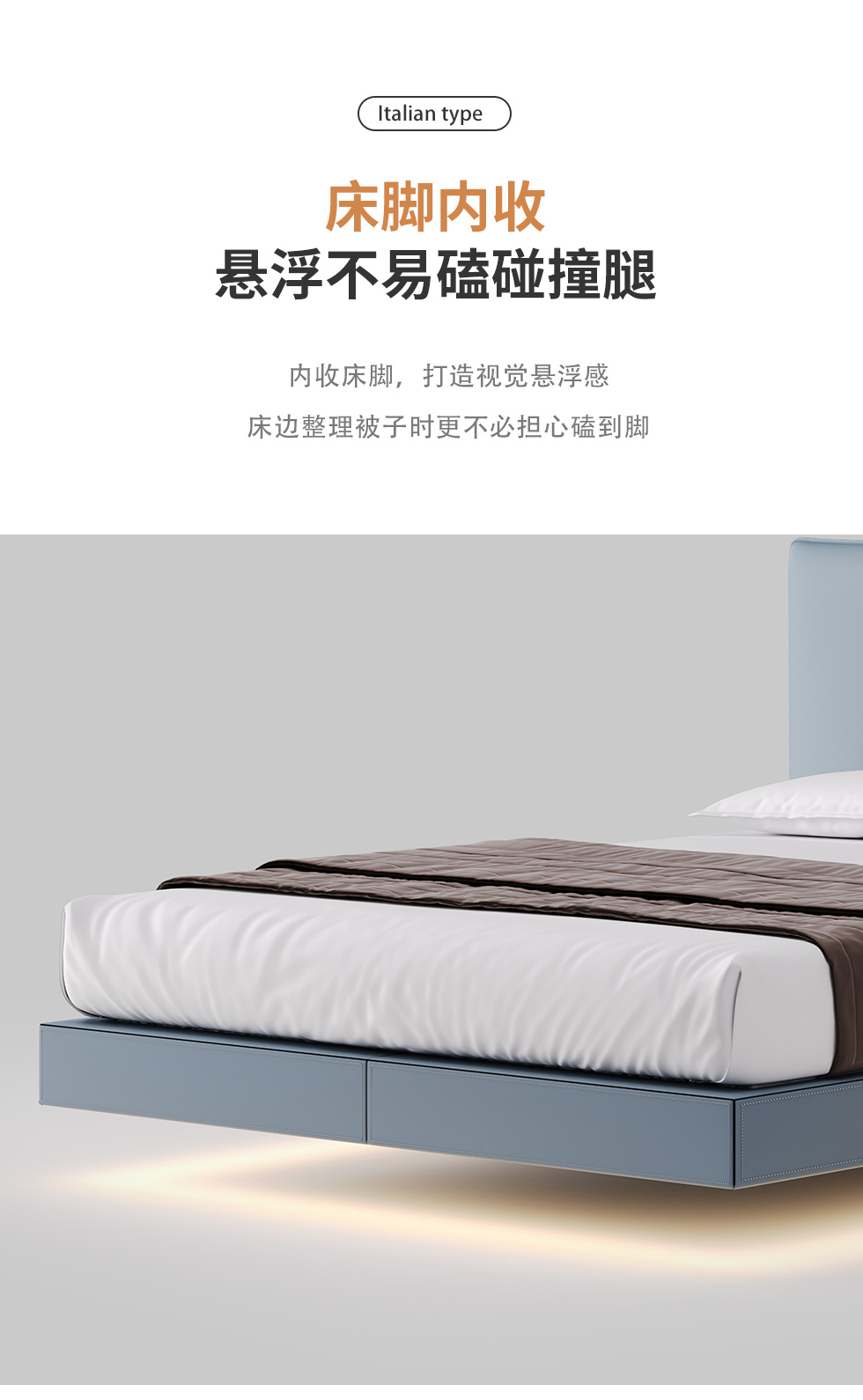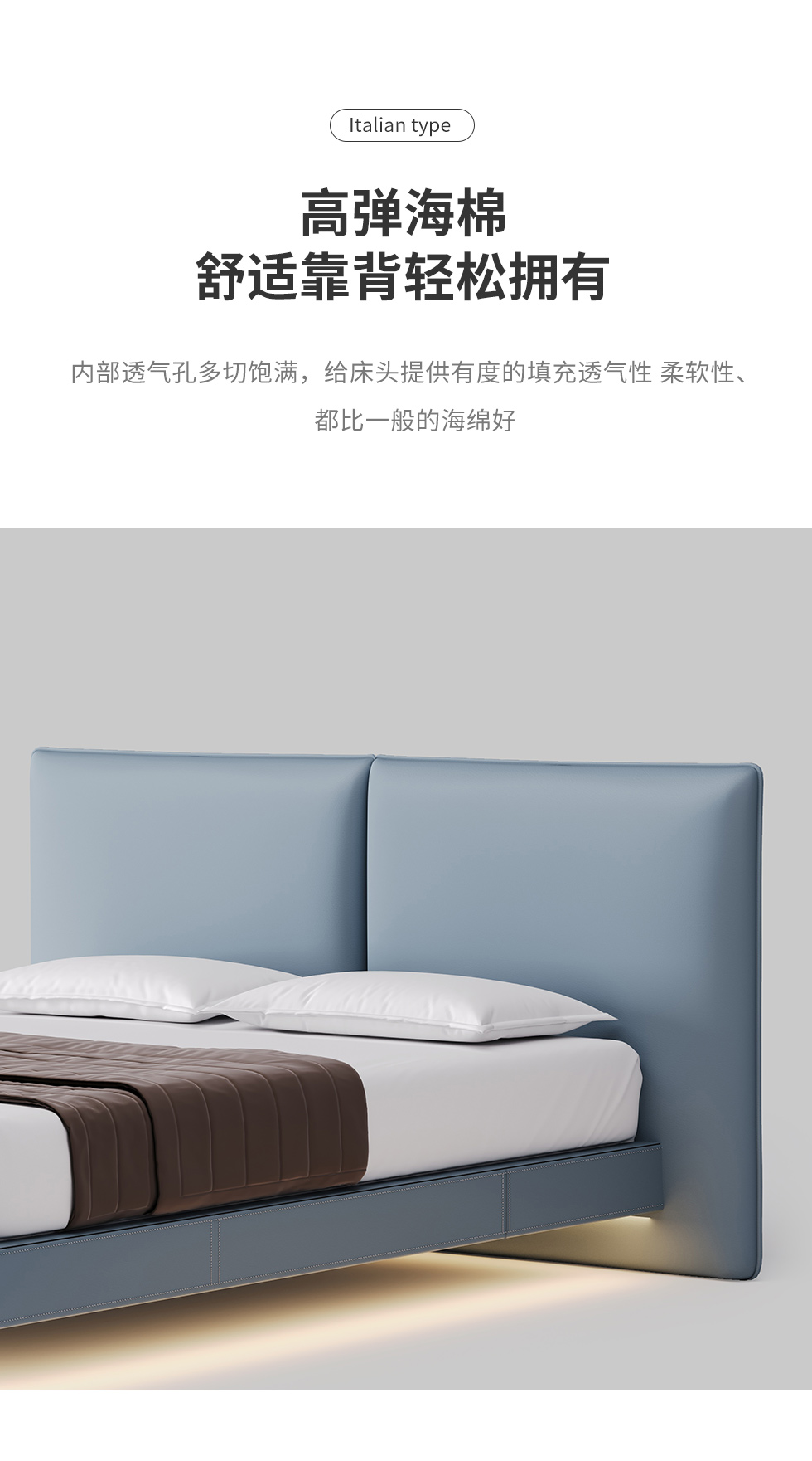德卡图 现代简约 全头层黄牛皮 全实木整体床架俄罗斯落叶松+多层板+高弹海棉+紫罗兰海棉 1.8*2.0米悬浮床¥6505
