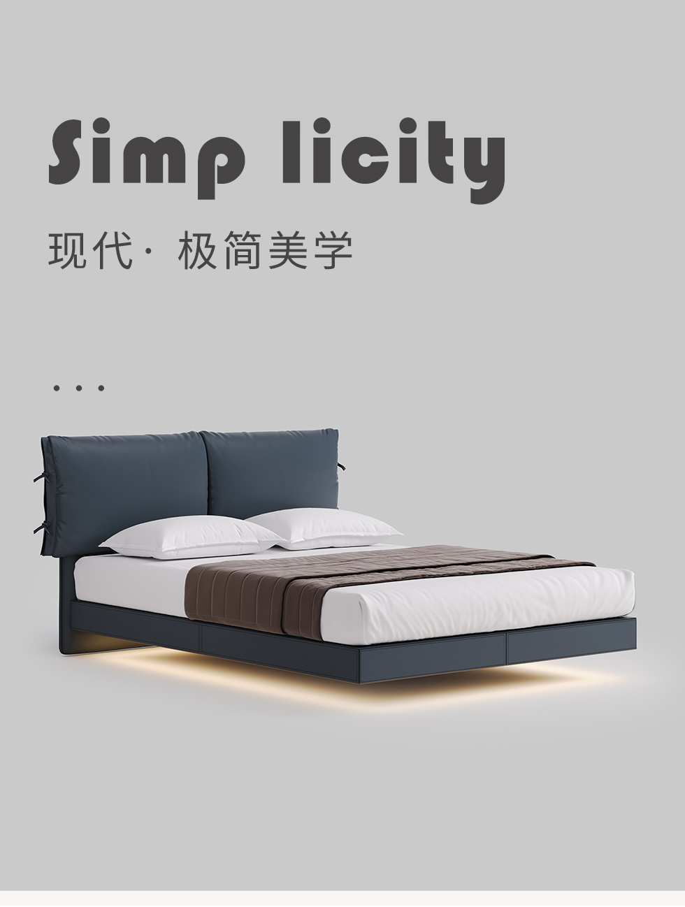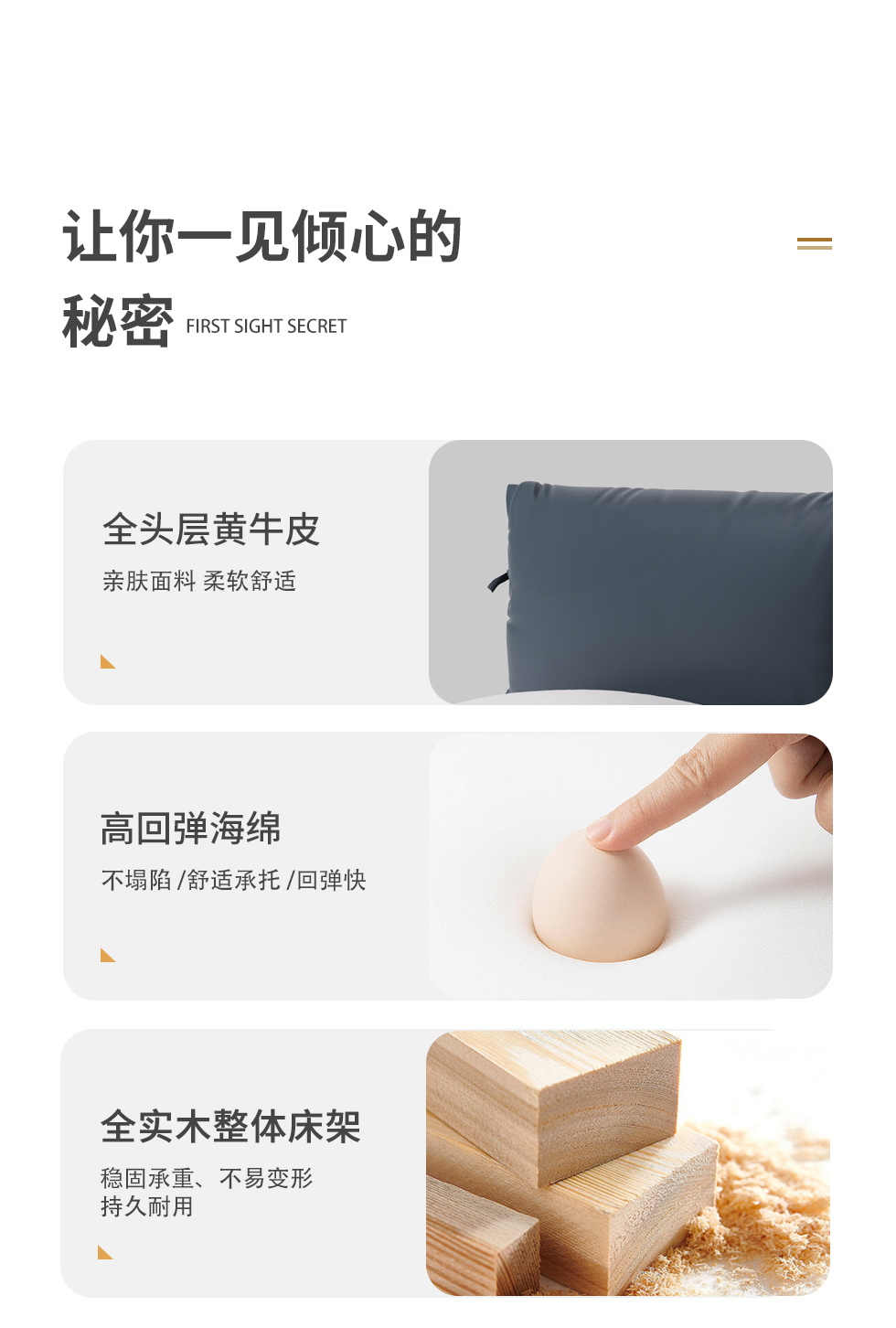德卡图 现代简约 全头层黄牛皮 全实木整体床架俄罗斯落叶松+多层板+高弹海棉+紫罗兰海棉 1.8*2.0米悬浮床¥6505