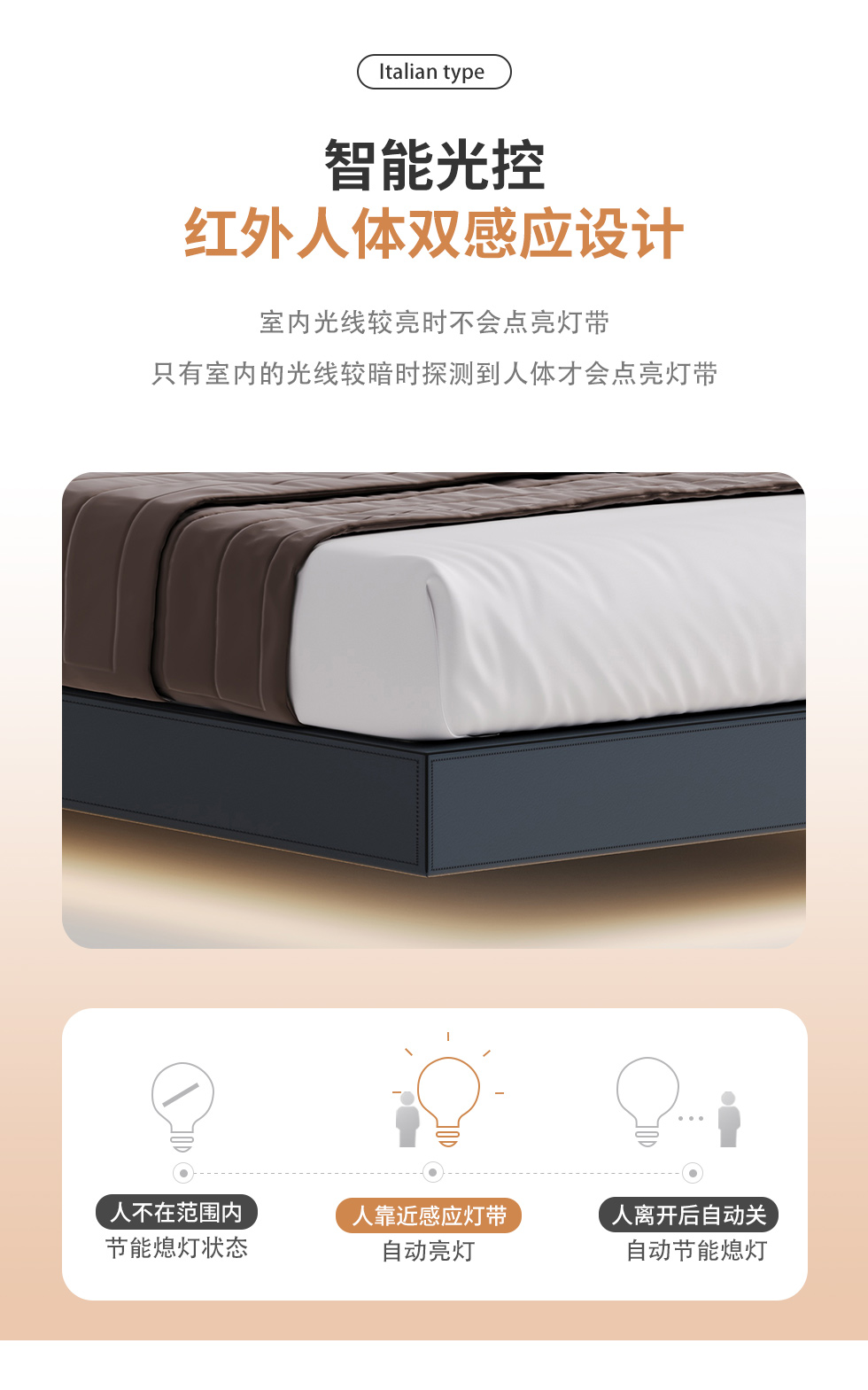 德卡图 现代简约 全头层黄牛皮 全实木整体床架俄罗斯落叶松+多层板+高弹海棉+紫罗兰海棉 1.8*2.0米悬浮床¥11652