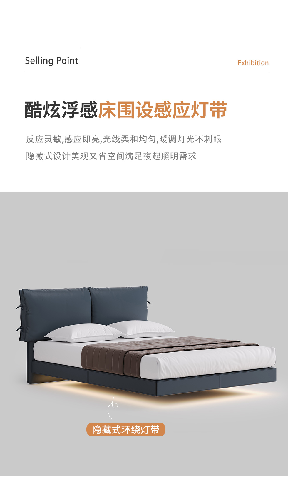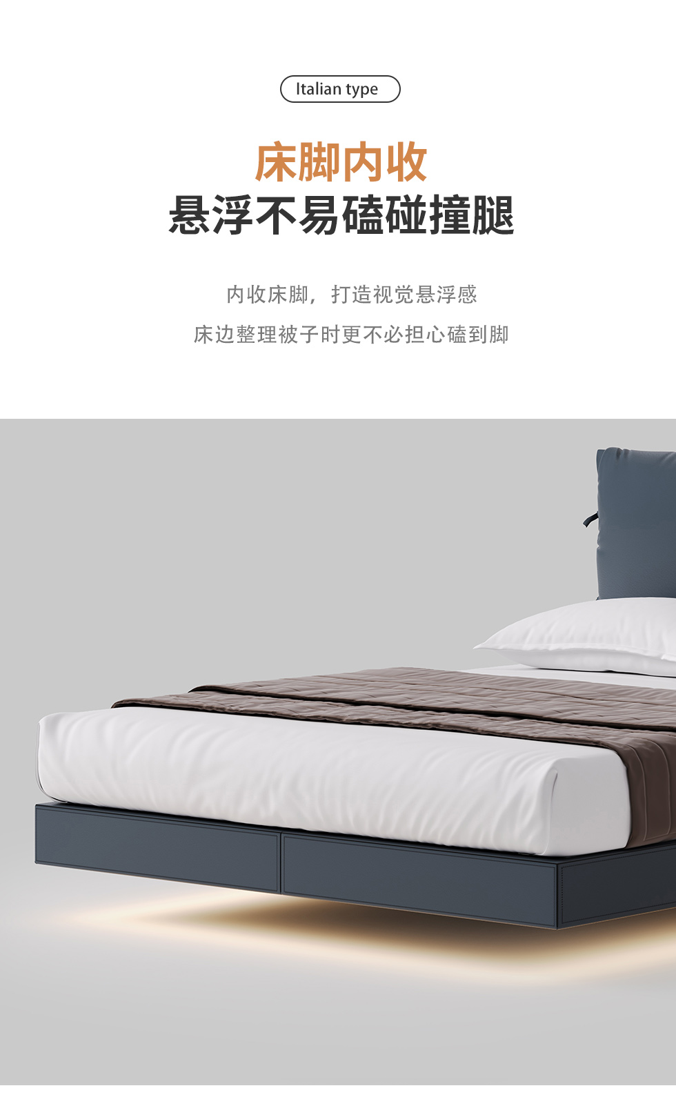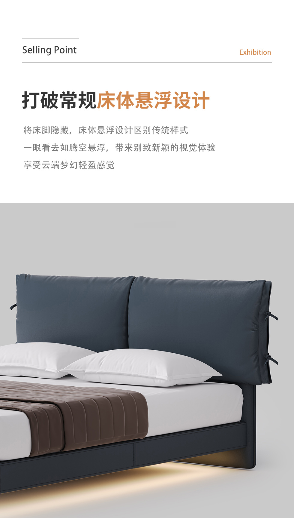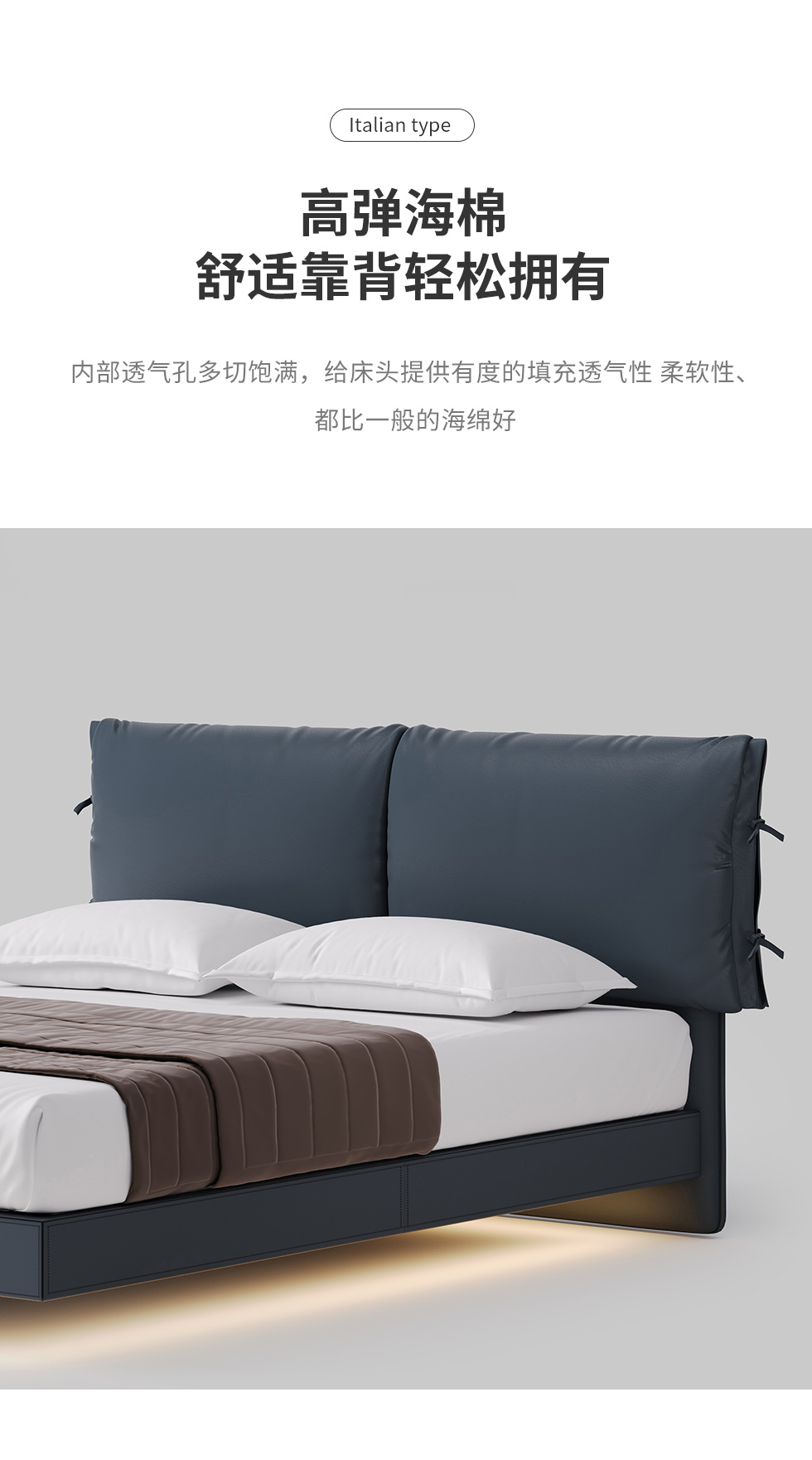 德卡图 现代简约 全头层黄牛皮 全实木整体床架俄罗斯落叶松+多层板+高弹海棉+紫罗兰海棉 1.8*2.0米悬浮床¥6505