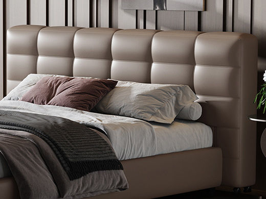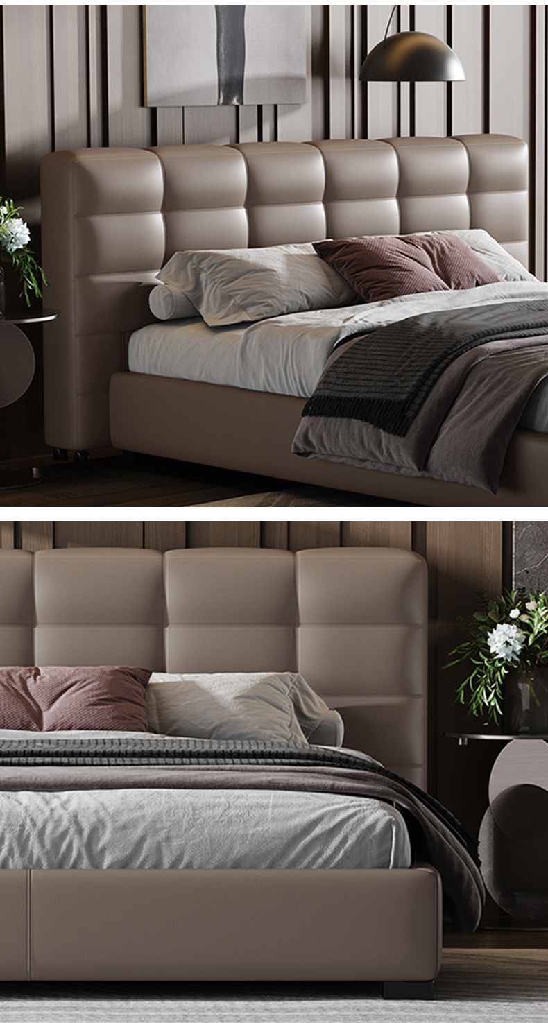 梵纳意简 网红 极简 多层实木板+接触面头层牛皮+仿真皮+高回弹海绵+10分松木排骨架+电镀五金 图片色 1.8米皮床¥5366