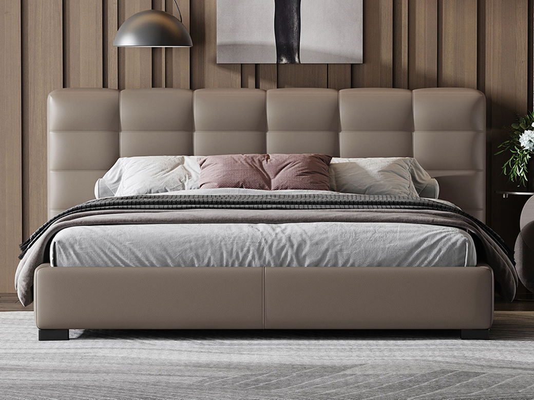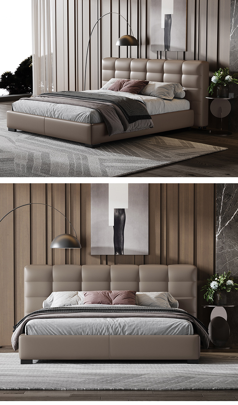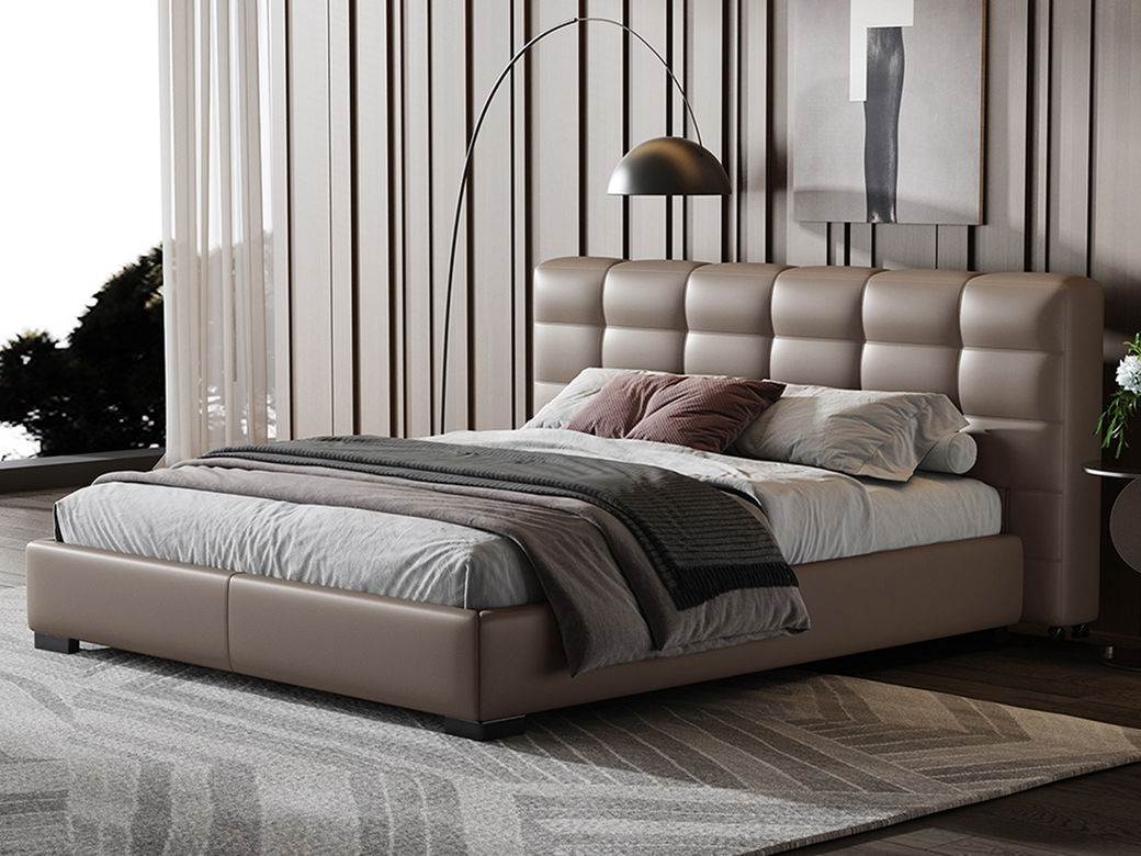 梵纳意简 网红 极简 多层实木板+接触面头层牛皮+仿真皮+高回弹海绵+10分松木排骨架+电镀五金 图片色 1.8米床