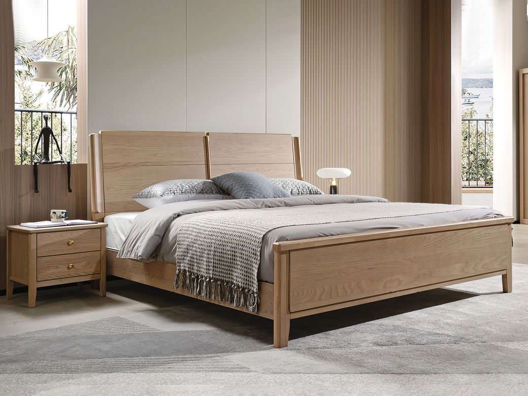 洛尔 中古风 现代实木 橡胶木+贴皮 麦卡色 1.8米 大床