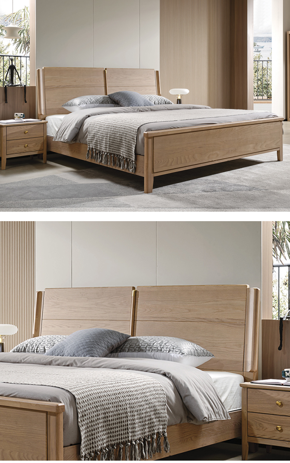 洛尔 中古风 现代实木 橡胶木+贴皮+科技布 麦卡色 1.8米 大床