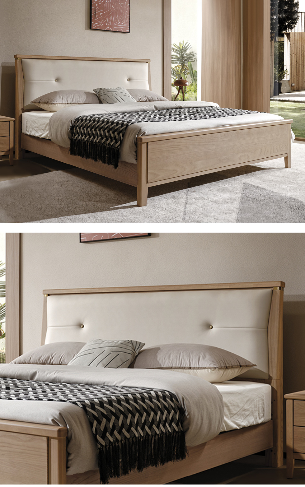 洛尔 中古风 现代实木 橡胶木+贴皮+超纤皮 麦卡色 1.8米 大床¥4327