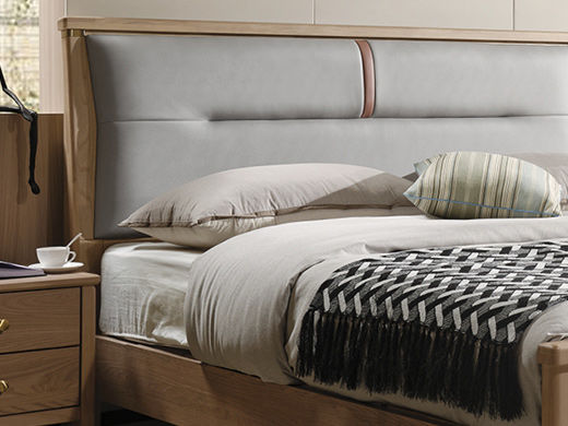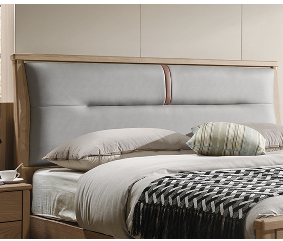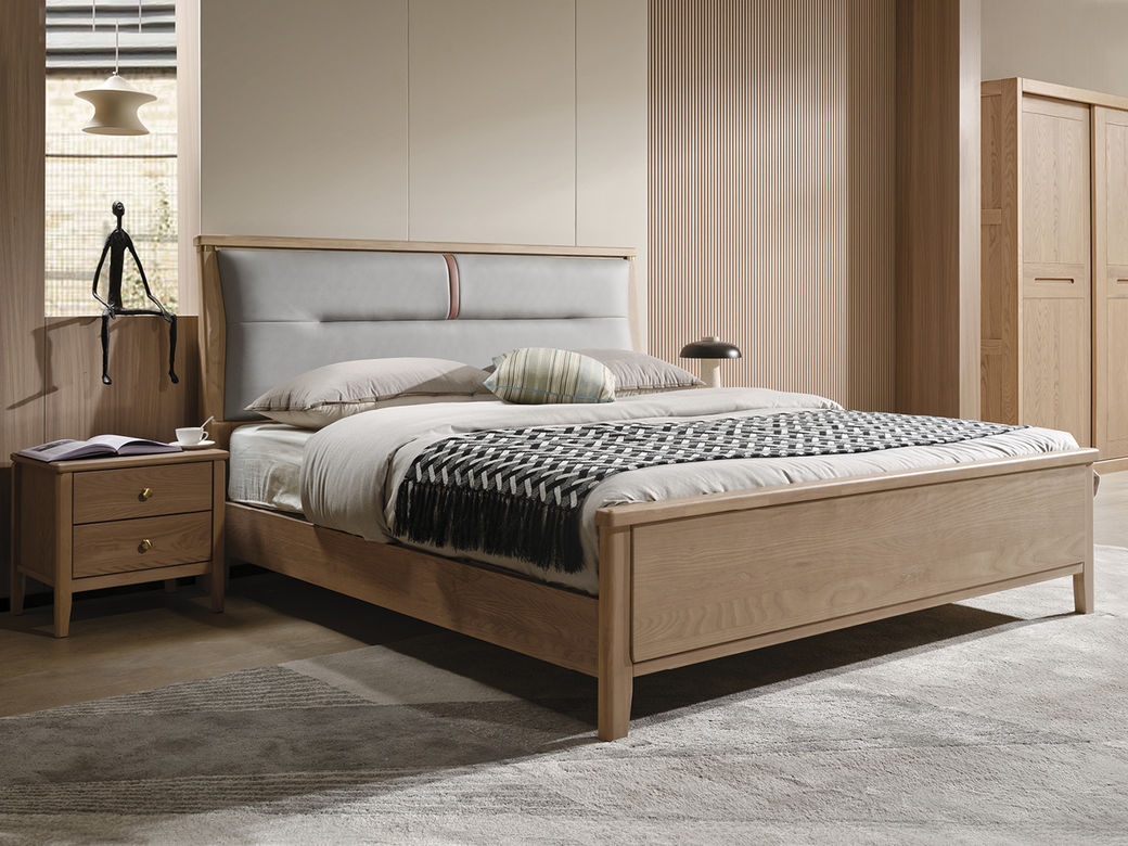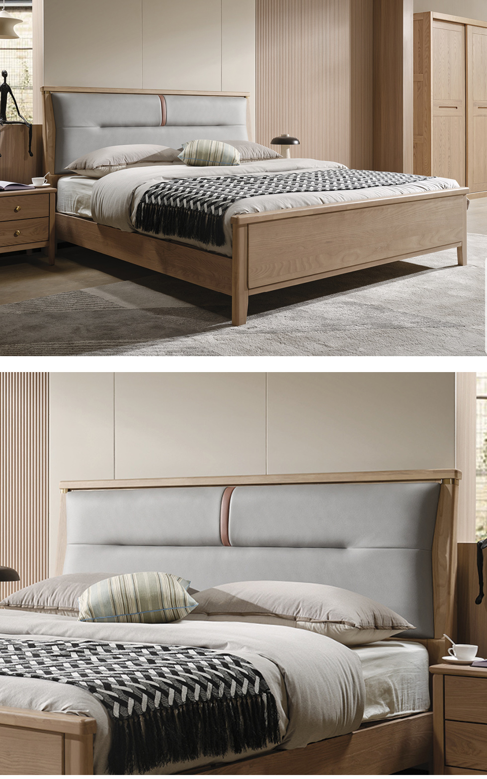 洛尔 中古风 现代实木 橡胶木+贴皮+超纤皮 麦卡色 1.8米 大床¥4327
