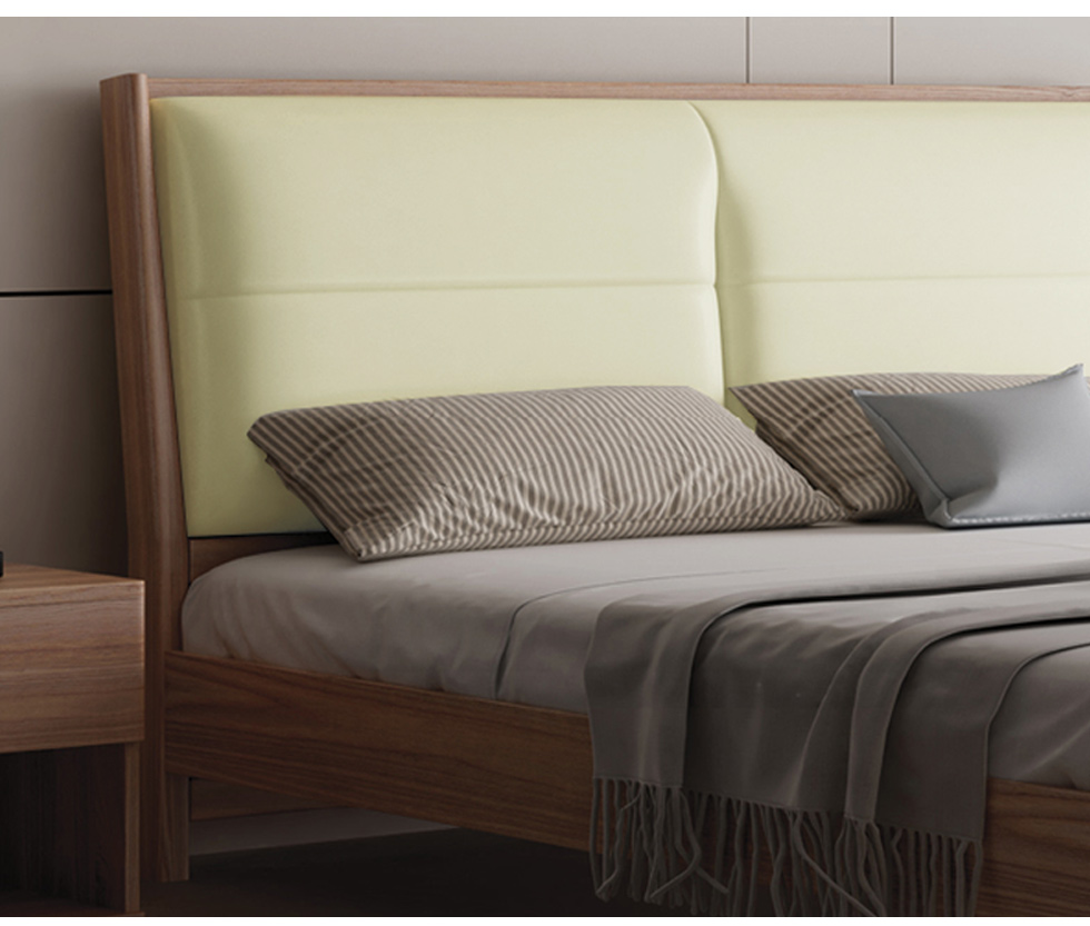 洛尔 中古风 现代实木 橡胶木+贴皮+超纤皮 麦卡色 1.5米 大床