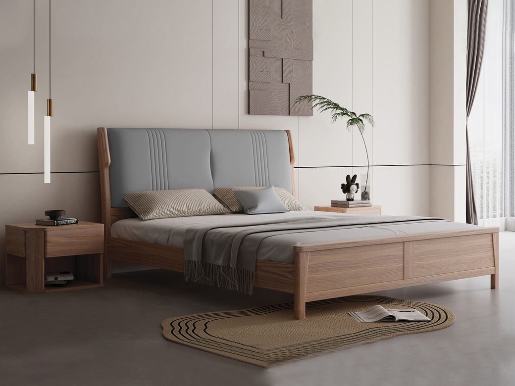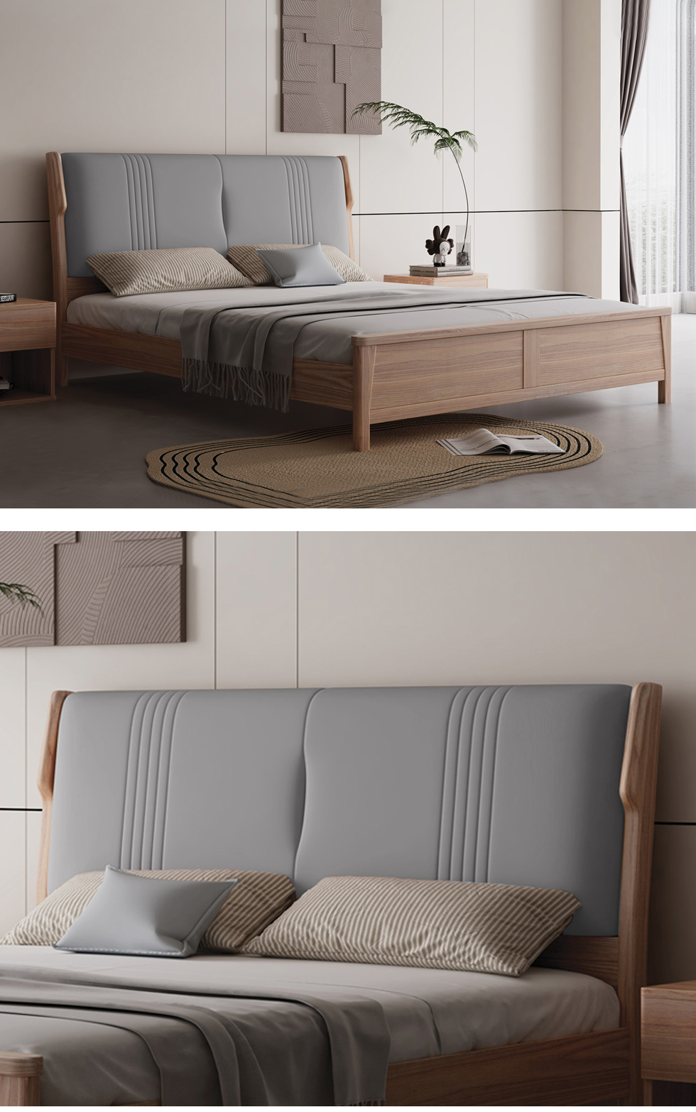 洛尔 中古风 现代实木 橡胶木+贴皮+超纤皮 麦卡色 1.8米 大床¥4327
