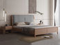 洛尔 中古风 现代实木 橡胶木+贴皮+科技布 麦卡色 1.8米 大床