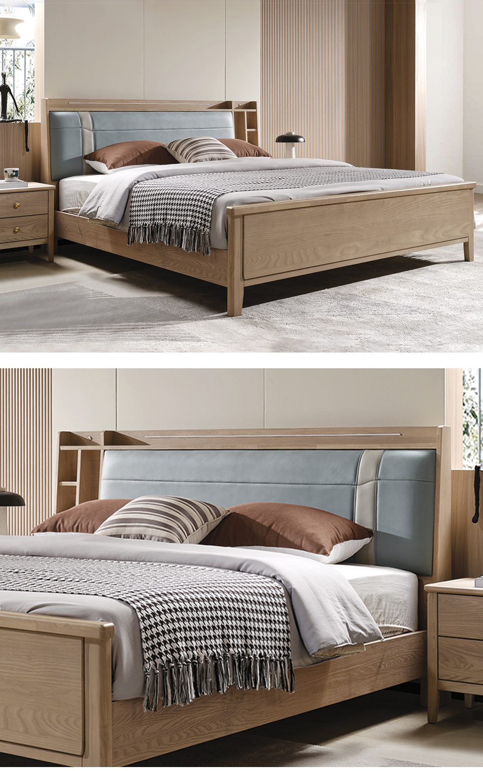 洛尔 中古风 现代实木 橡胶木+贴皮+超纤皮 麦卡色 1.8米 大床¥4327