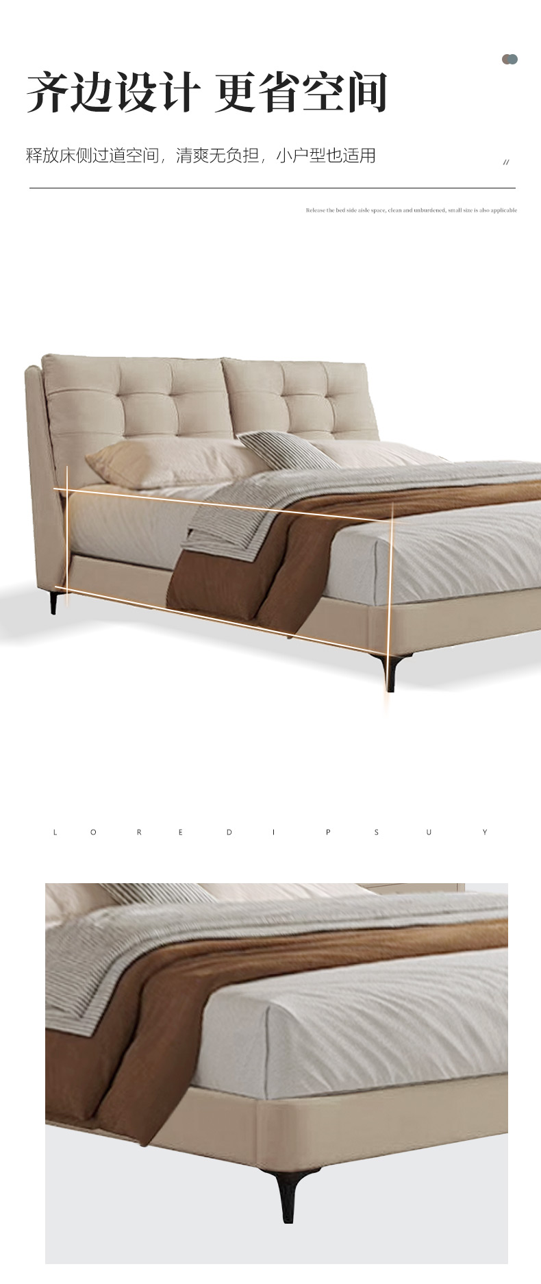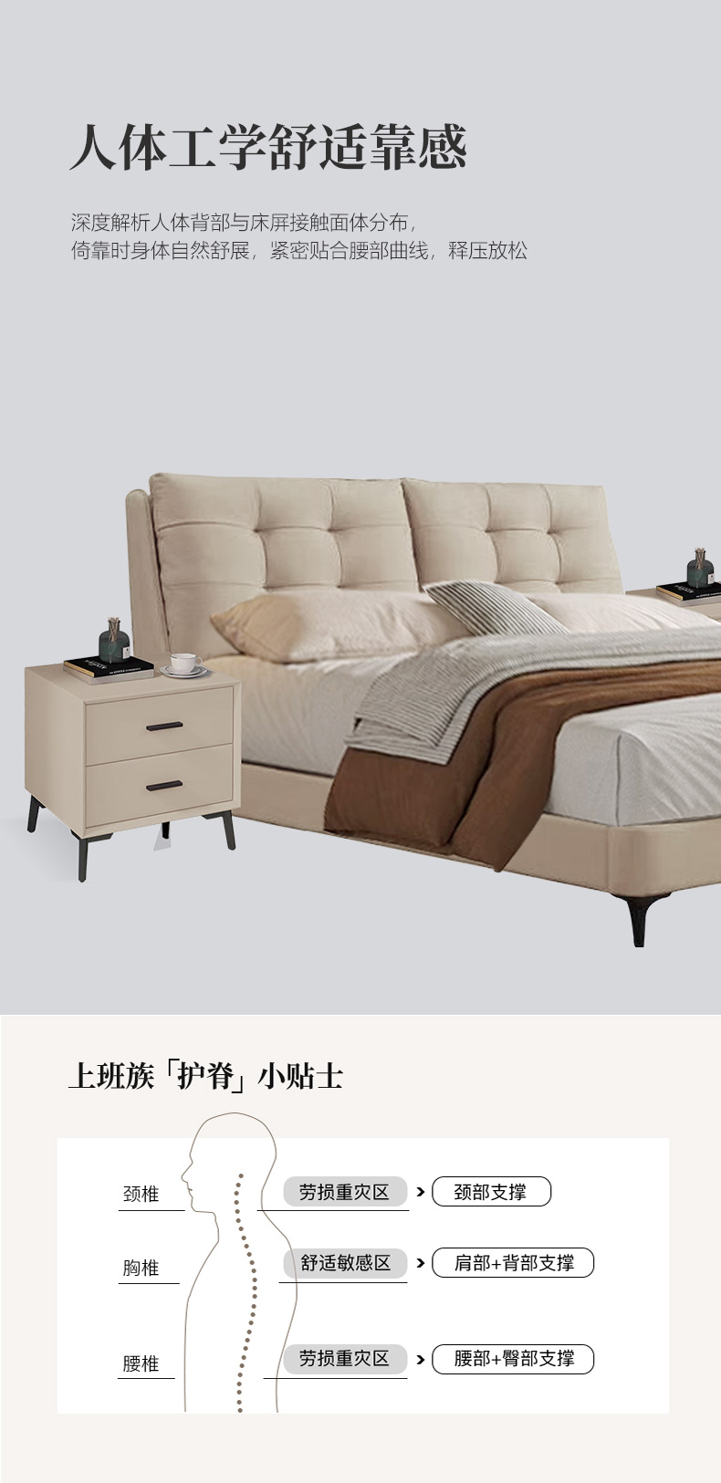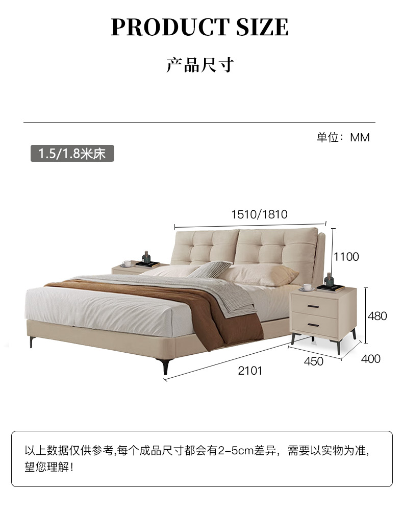 【套餐专享价】每屋优享系列 现代简约 接触面头层牛皮+仿皮+实木框架+钢木排骨架+胶脚 床头柜平面拉手/5分胶脚1.8米床+2床头柜¥3168