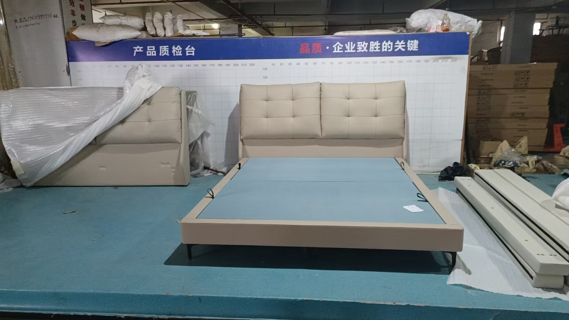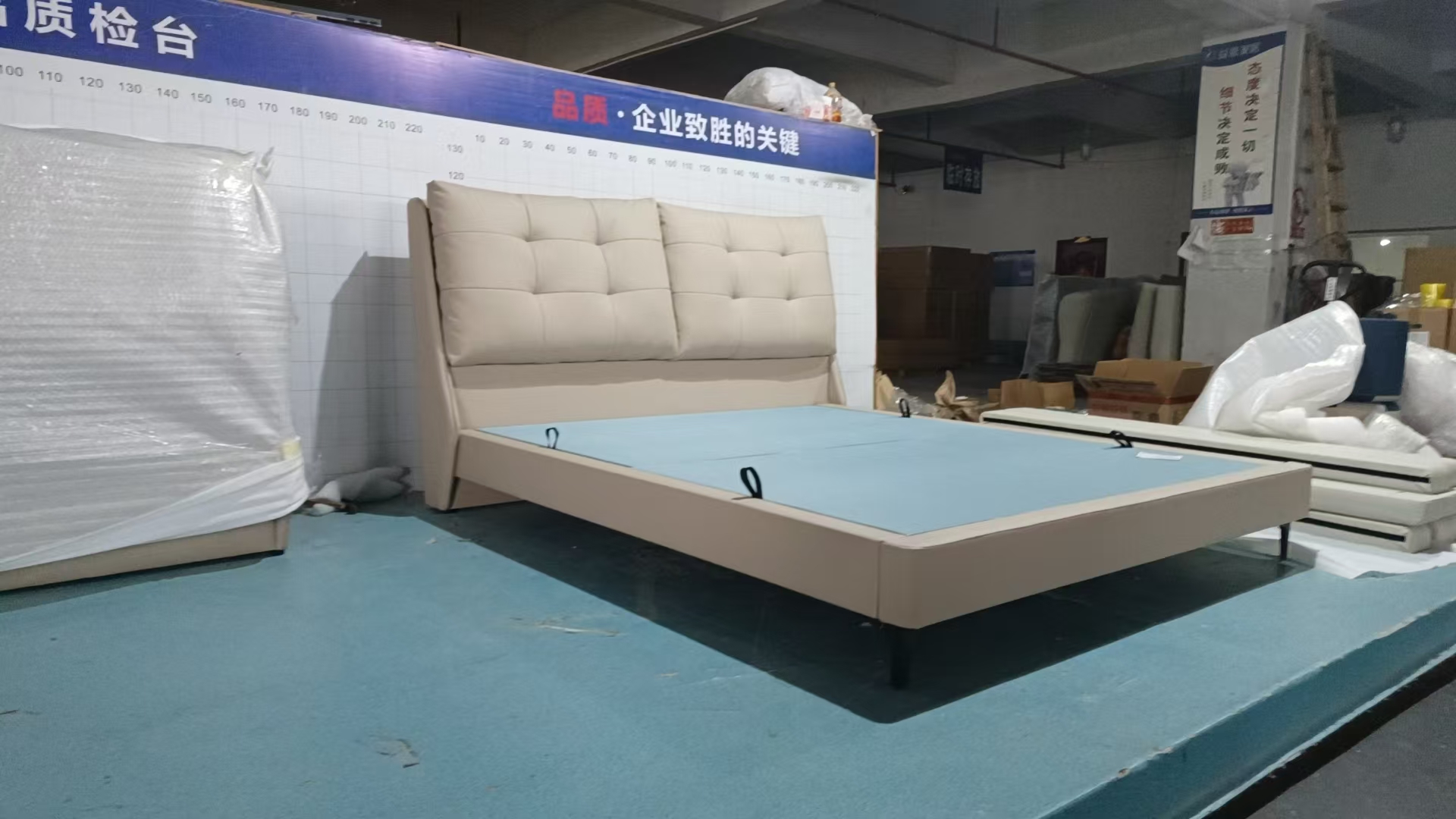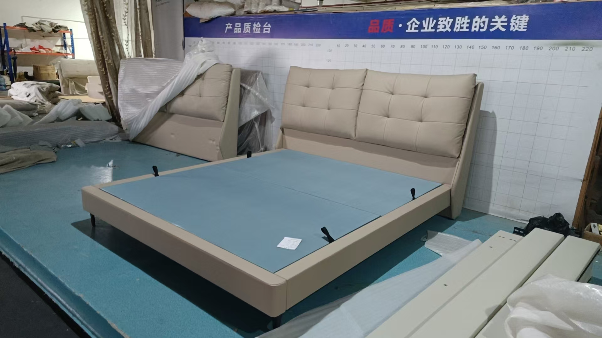 【套餐专享价】每屋优享系列 现代简约 接触面头层牛皮+仿皮+实木框架+钢木排骨架+胶脚 床头柜平面拉手/5分胶脚1.8米床+2床头柜¥3168