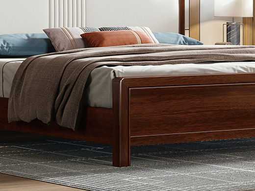 宝瑞·檀风 新中式 印尼金花梨木+多层实木板+木纹木皮+静音床板 紫檀色 1.8米床¥4853
