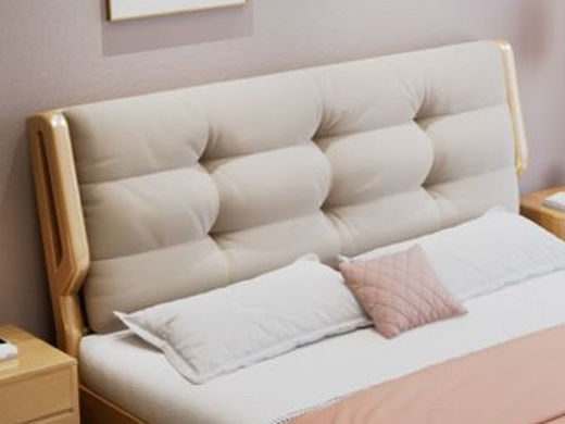 简森曼 北欧风 床头床尾脚为橡胶木靠背为皮艺填充海绵 原木色 1.8米床 【实木拼接工艺】¥2216