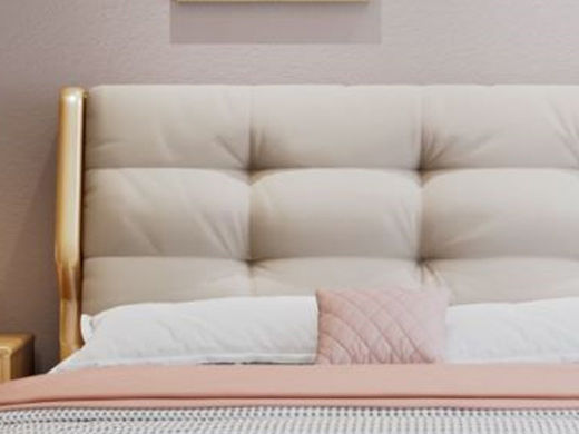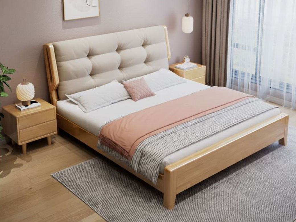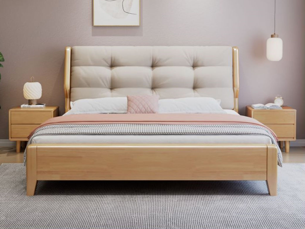 简森曼 北欧风 床头床尾脚为橡胶木靠背为皮艺填充海绵 原木色 1.8米床 【实木拼接工艺】¥2467