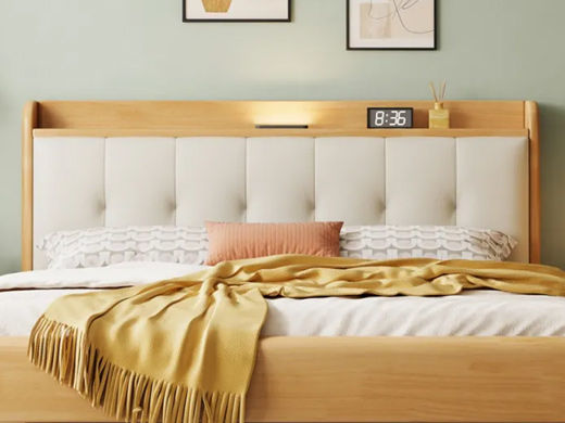 简森曼 北欧风 床头床尾脚为橡胶木靠背为皮艺填充海绵 原木色 1.8米床 【实木拼接工艺】¥2104