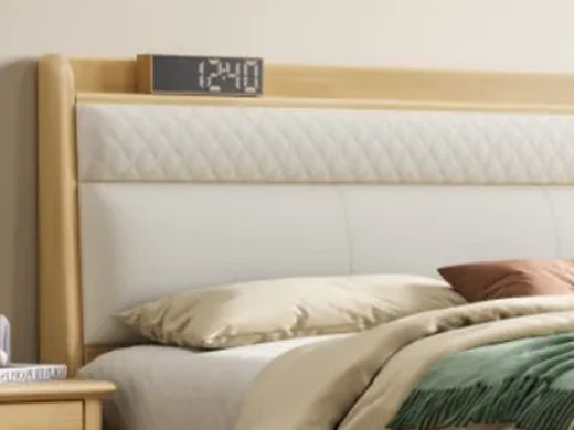简森曼 北欧风 床头床尾脚为橡胶木靠背为皮艺填充海绵 原木色 1.8米床 【实木拼接工艺】¥2216