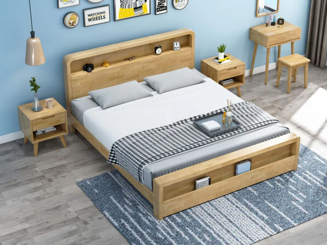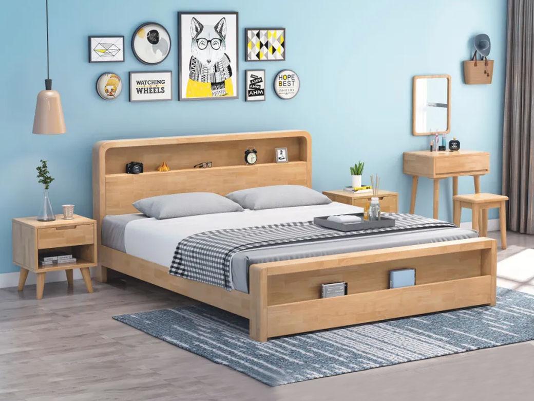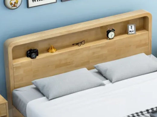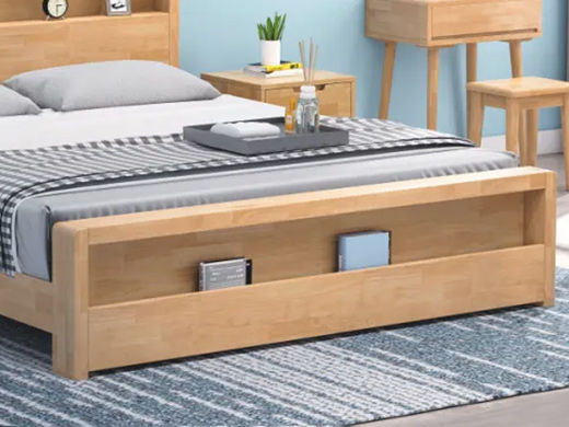 简森曼 北欧风 床头床尾脚为橡胶木 原木色 1.8米床 【实木拼接工艺】