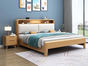 简森曼 北欧风 床头床尾脚为橡胶木靠背为皮艺填充海绵 原木色 1.8米床 【实木拼接工艺】¥2216