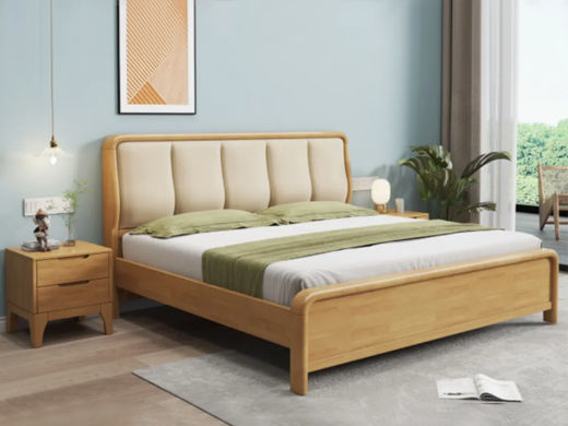 简森曼 北欧风 床头床尾脚为橡胶木靠背为皮艺填充海绵 原木色 1.8米床 【实木拼接工艺】 |