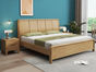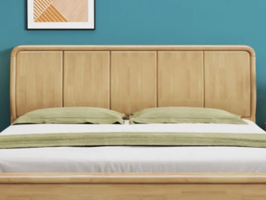简森曼 北欧风 床头床尾脚为橡胶木靠背为皮艺填充海绵 原木色 1.8米床 【实木拼接工艺】¥2104